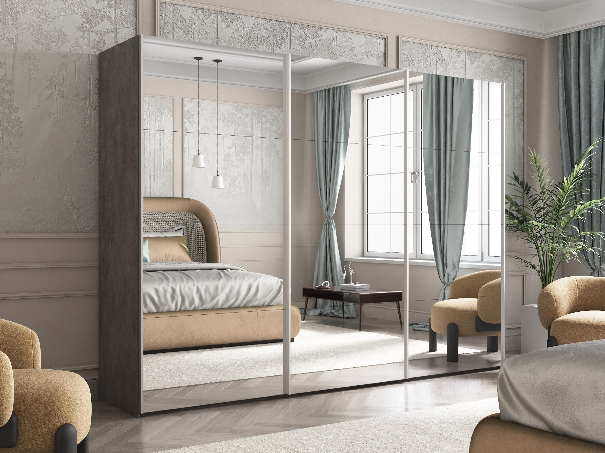 Отзывы о Столплит Шкаф-купе Эста Зеркало+Зеркало+Зеркало 300х66х240 Бетон серый