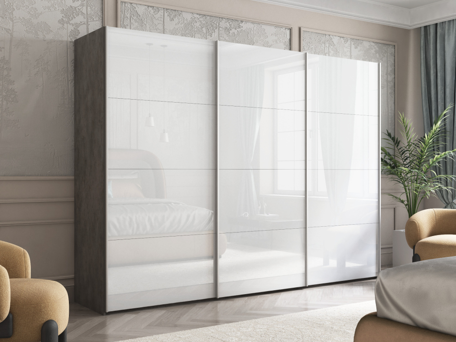 Отзывы о Столплит Шкаф-купе Эста Трио Стекло белое 300х66х240 Бетон серый