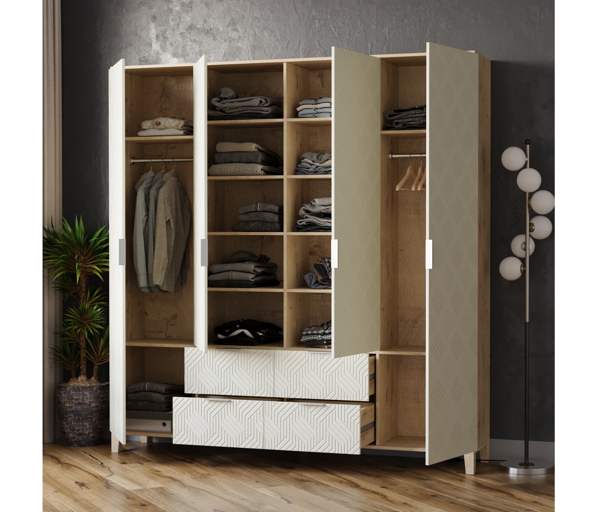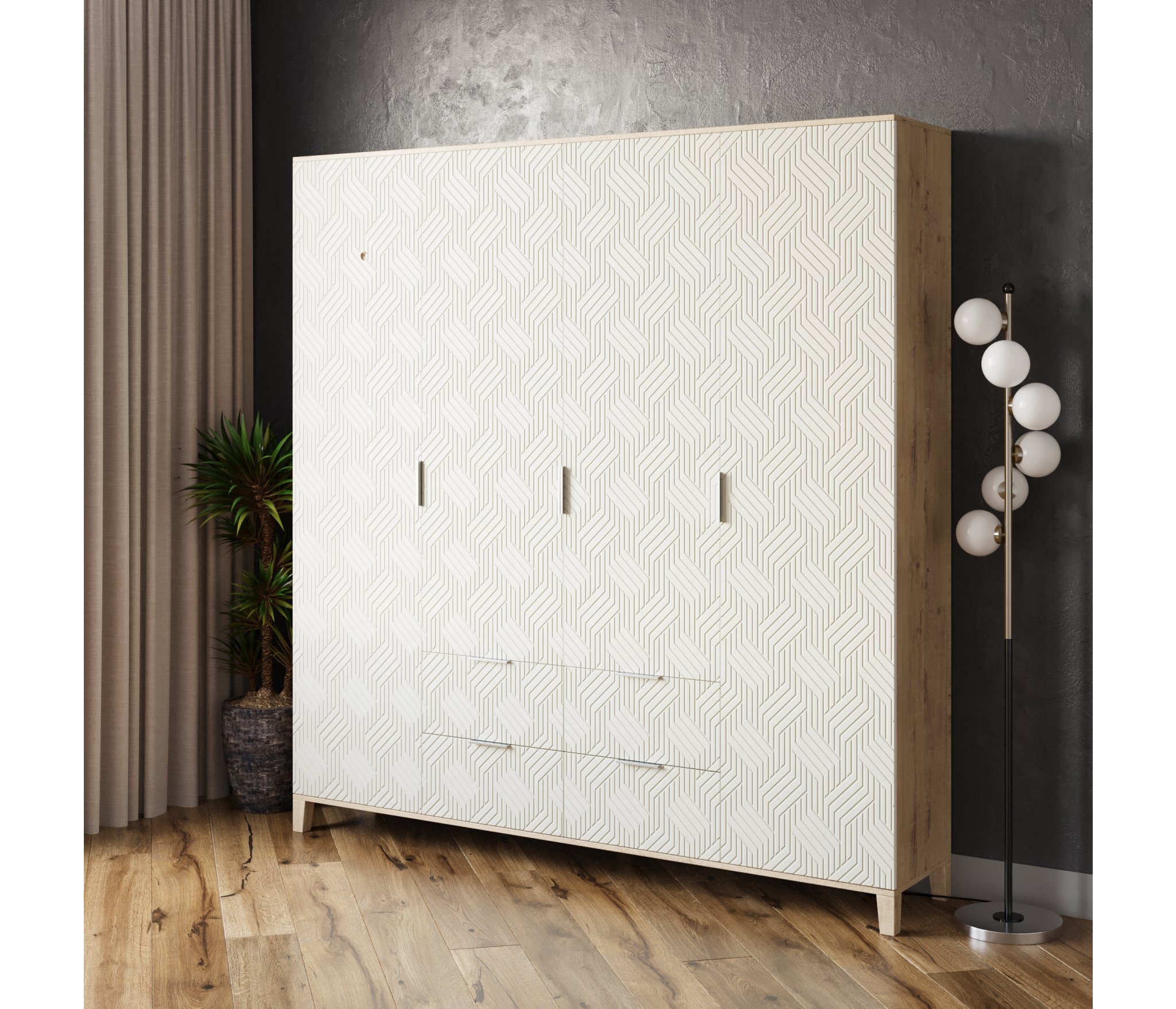 Шкафы Марвин, выполненные в скандинавском стиле, органично дополнят интерьер любой комнаты. Ножки из массива бука, геометрическая фрезеровка на фасадах, сочетание цветов отличительная черта серии Шкафов Марвин.