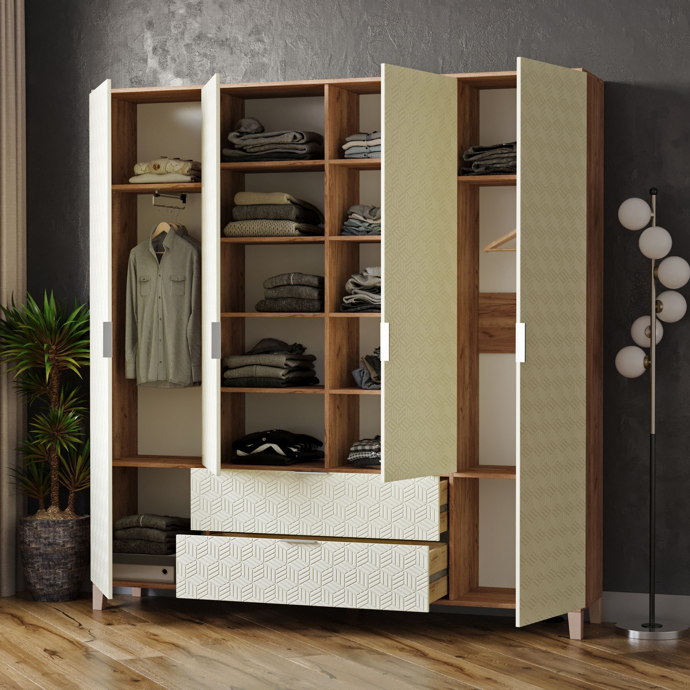 Шкаф распашной Марвин 4 (Бежевый) Код I0000394247