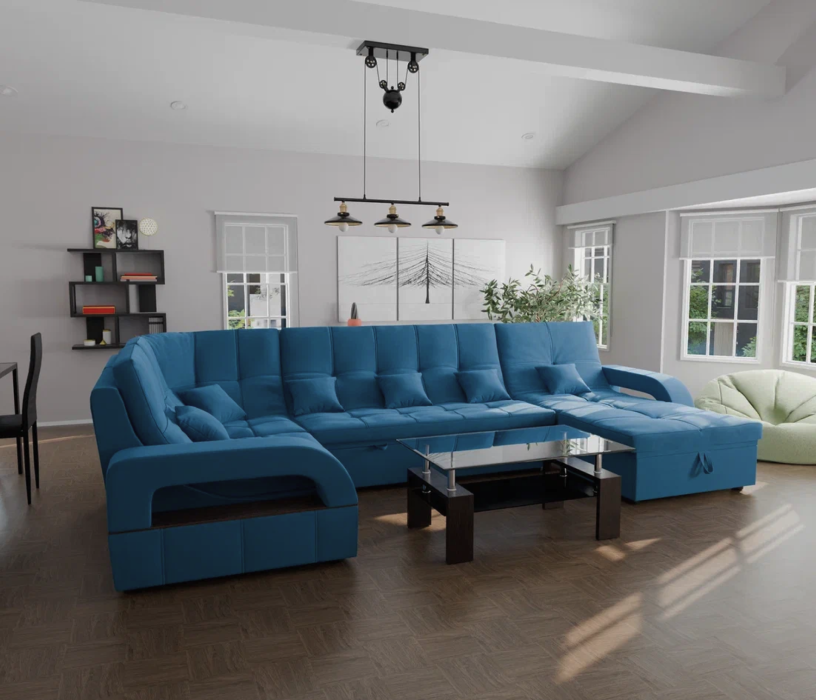 Он имеет высоту 97 см, ширину 350 см и глубину 187 см. Обит велюром - Veluta lux. Диван обладает универсальным расположением угла, что позволяет его использовать в любом помещении.