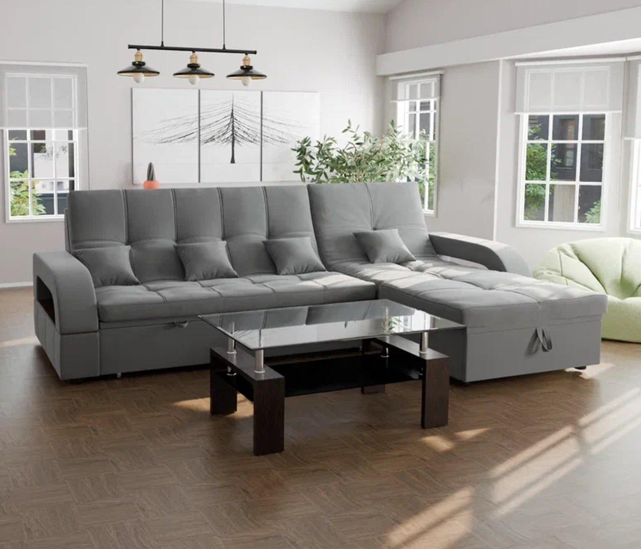 Он имеет высоту 97 см, ширину 268 см и глубину 175 см. Диван обладает универсальным расположением угла, что позволяет его использовать в любом помещении.