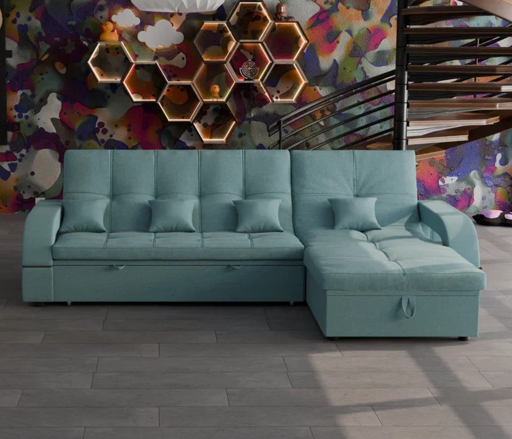 Отзывы о Столплит Модульный диван Майами-2,микровелюр,антивандальная и водостойкая ткань,венеция Голубой