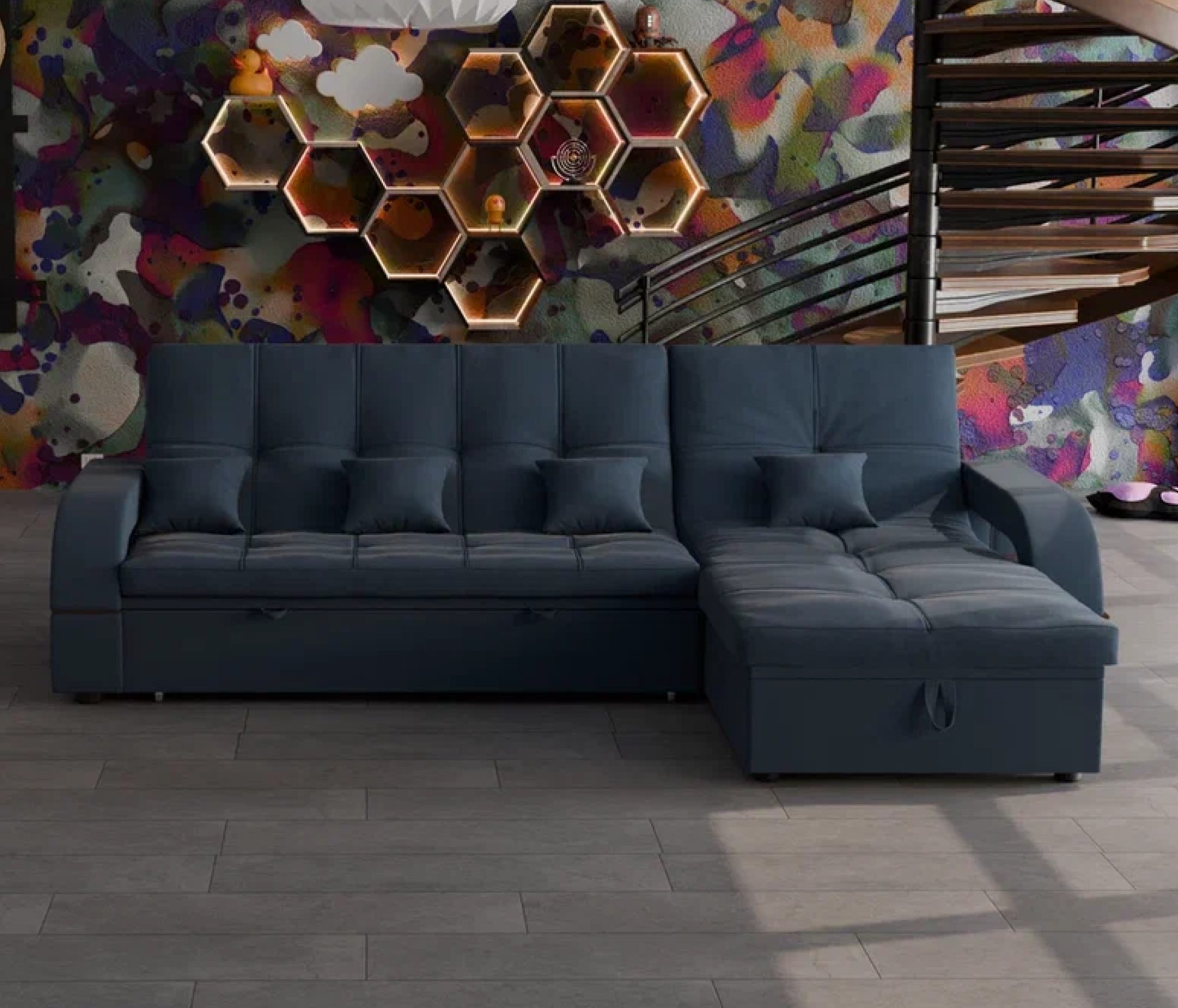 Отзывы о Столплит Модульный диван Майами-2,микровелюр,антивандальная и водостойкая ткань,венеция Индиго синий