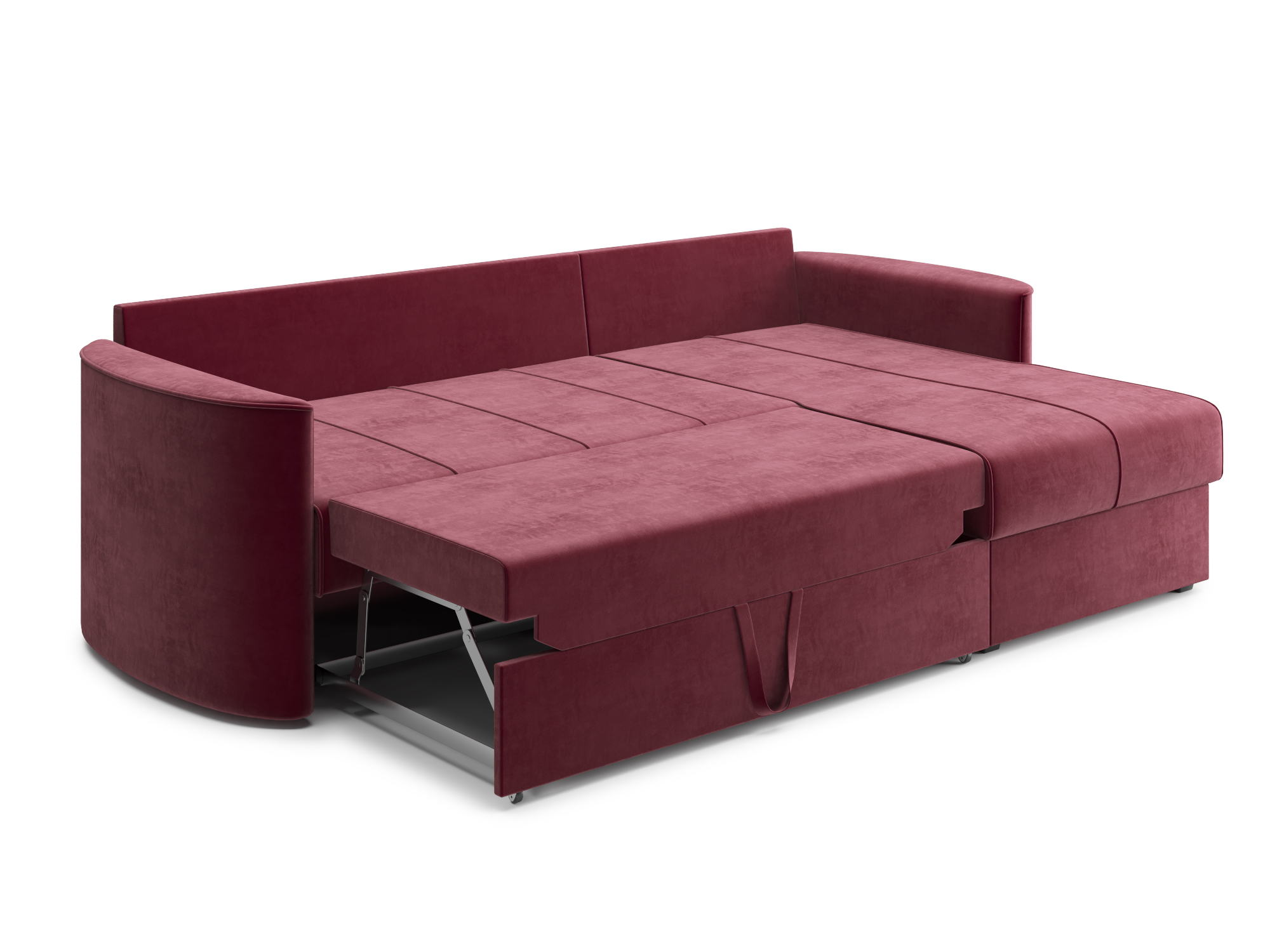 - Механизм раскладки дельфин – основан на выкатывании дополнительной платформы, скрытой под сидением дивана. Чтобы разложить диван, нужно потянуть за специальные ремешки, помогающие перемещать элементы конструкции. В результате этого действия нижняя часть дивана начнёт перемещаться. Делать это нужно до тех пор, пока часть не выдвинется максимально вперед. Затем следует немного приподнять элемент и упереть в противоположную часть, которая осталась неподвижной. Под сиденьем дивана находится короб для хранения вещей и постельных принадлежностей.