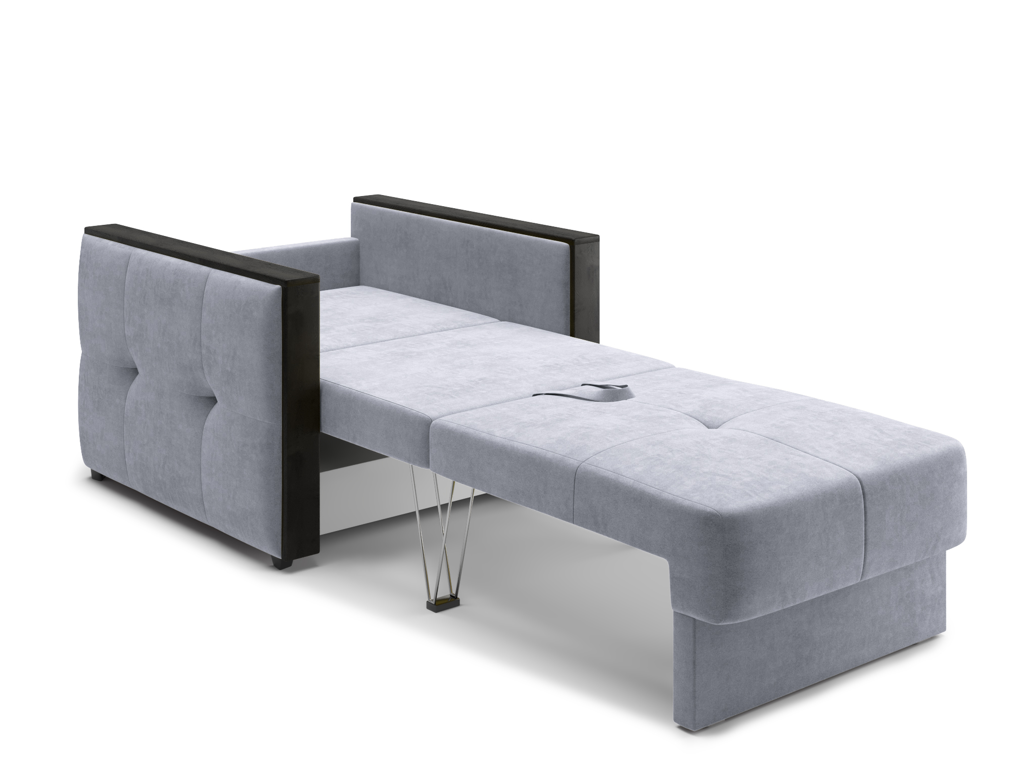 - Механизм раскладки трёхсекционная еврокнижка. В отличие от еврокнижки, спальное место у такого дивана образуется поперёк, а не вдоль сидячего места и состоит из трёх частей. Благодаря такой конструкции габариты дивана в ширину могут быть значительно меньше, чем у еврокнижки, что актуально при планировании расстановки мебели в зависимости от размеров помещения. Под сиденьем дивана находится короб для хранения вещей и постельных принадлежностей.