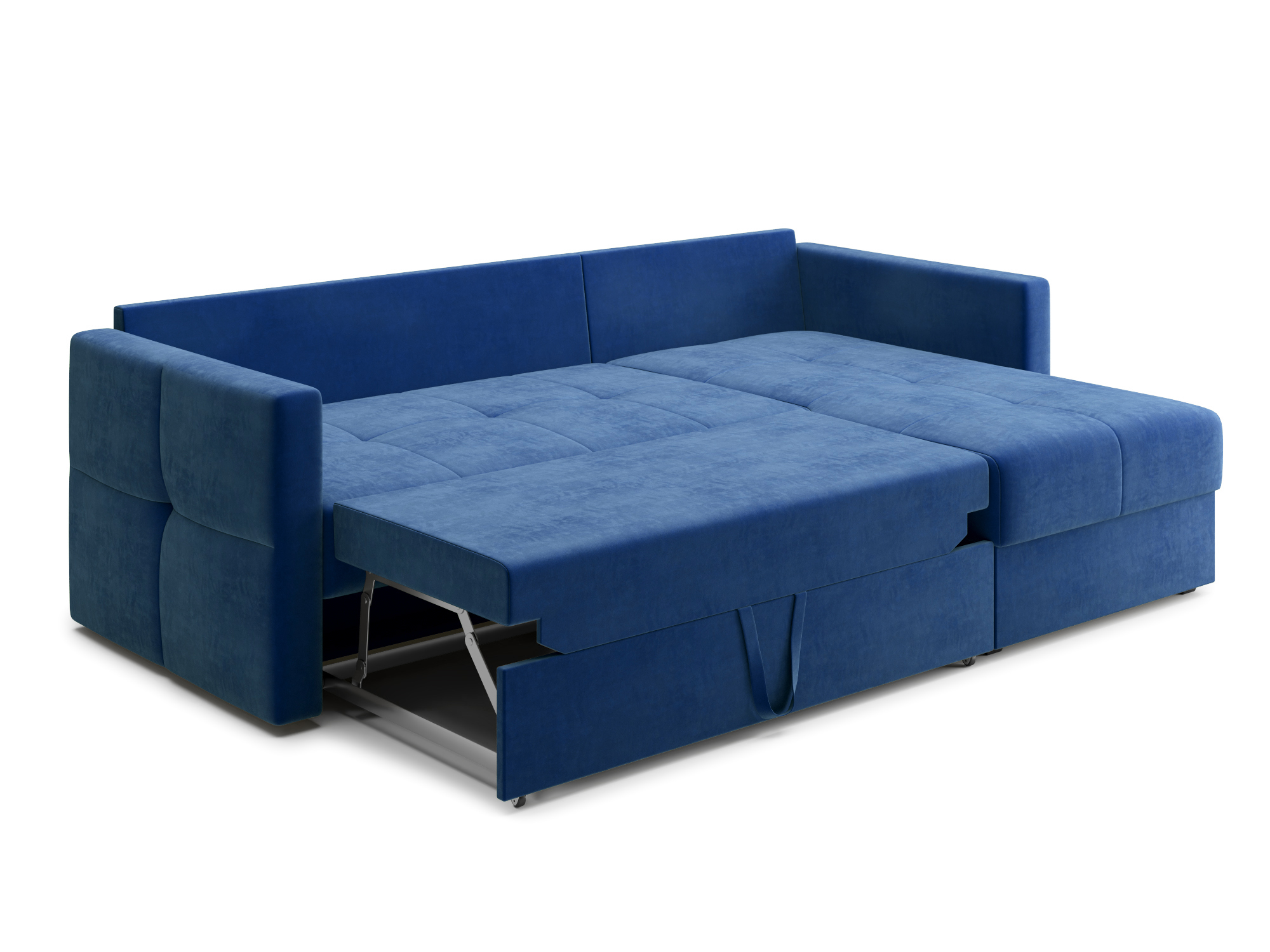 - Механизм раскладки дельфин – основан на выкатывании дополнительной платформы, скрытой под сидением дивана. Чтобы разложить диван, нужно потянуть за специальные ремешки, помогающие перемещать элементы конструкции. В результате этого действия нижняя часть дивана начнёт перемещаться. Делать это нужно до тех пор, пока часть не выдвинется максимально вперед. Затем следует немного приподнять элемент и упереть в противоположную часть, которая осталась неподвижной. Под сиденьем дивана находится короб для хранения вещей и постельных принадлежностей.