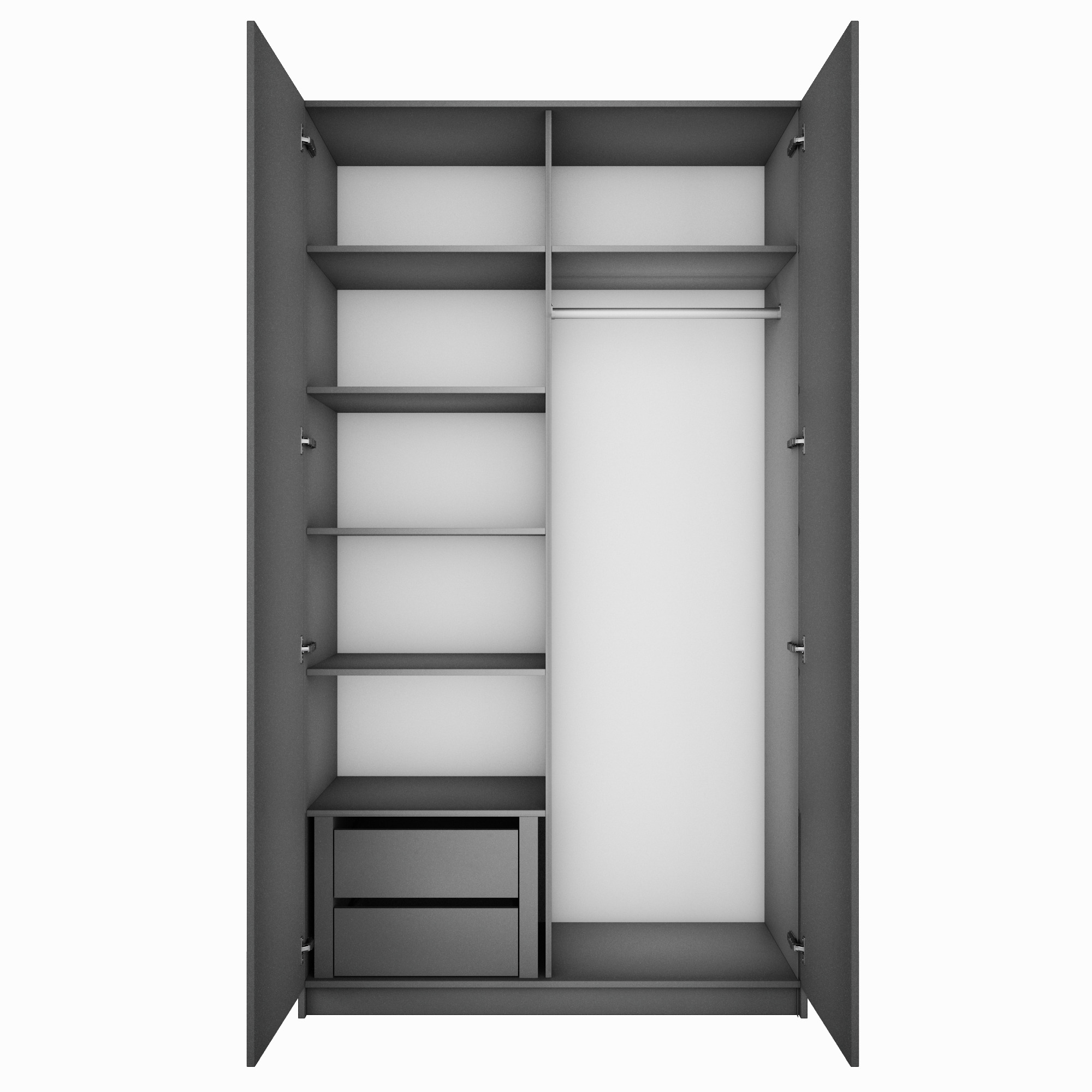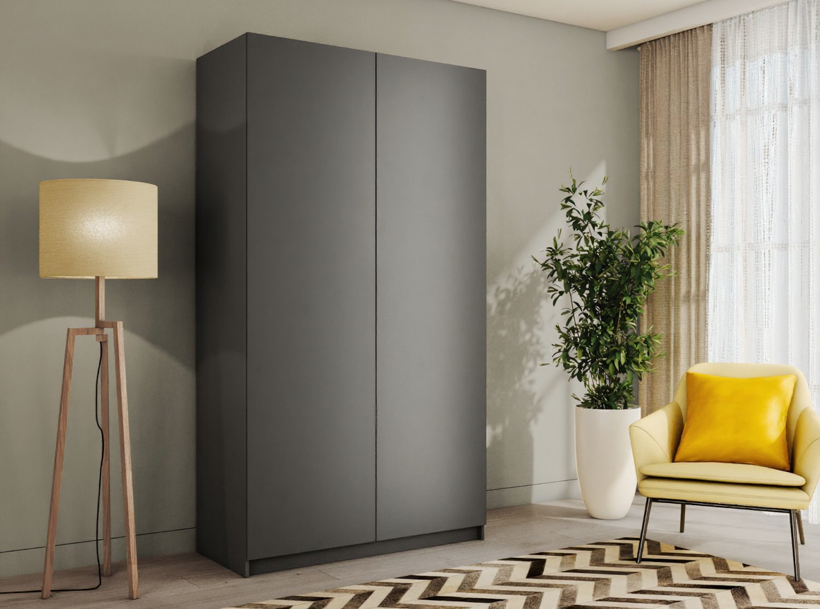 Благодаря надежным полкодержателям - штифтам, полки шкафа могут выдерживать до 15 кг, штанга выдерживает нагрузку до 60 кг. Вы сможете убрать сезонные вещи, постельное белье на верхние полки. Распашной шкаф оснащен долговечной, ударостойкой кромкой ПВХ, которая защищает его торцы от сколов и повреждений, что обеспечит вам комфортное и долгое использование гардероба. Распашная система дверей Titus B-Type обеспечивает надежное прилегание дверцы к корпусу шкафа и высокую износостойкость. Механизм не деформируется при значительных нагрузках и максимально практичен в эксплуатации. Шкаф оснащен удобной минималистичной ручкой, изготовленной из алюминия. В производстве используется безопасное ЛДСП международного класса Е1, что способствует безопасному использованию на протяжении всего срока эксплуатации.