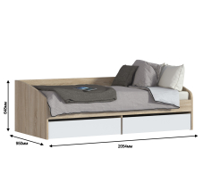 Кровать Мамбо СБ-2372.Н с матрасом Сити - Бормио 900*2000 (Дуб Сонома/Белый)