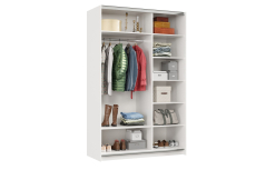 Лицевые элементы оформлены кромкой ПВХ толщиной 2 мм . Внутренние и скрытые детали защищены кромкой ПВХ толщиной 0,4 мм. Штанга для одежды расположена в левой части корпуса, выдерживает нагрузку до 22кг.