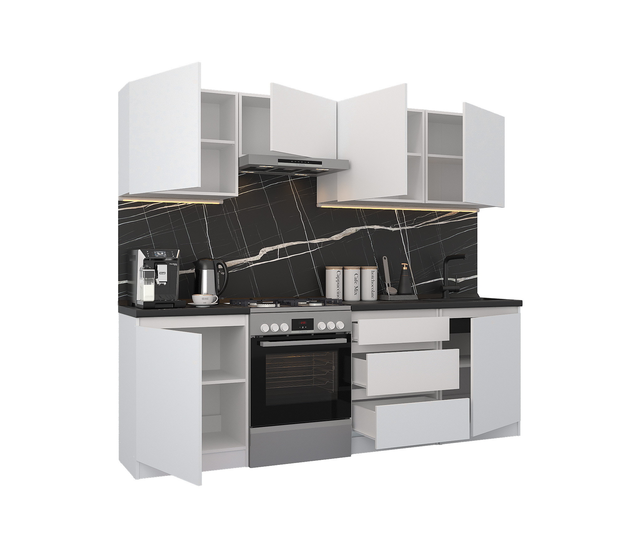 Кухонный гарнитур Леон прямой 240 см, белый (Белый)