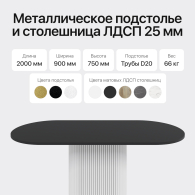 – трубчатое основание (подстолье) изготовлено из металла (высококачественная нержавеющая сталь) с устойчивой (двойной) порошковой окраской - 700х350мм, столешница - ЛДСП толщиной 25 мм