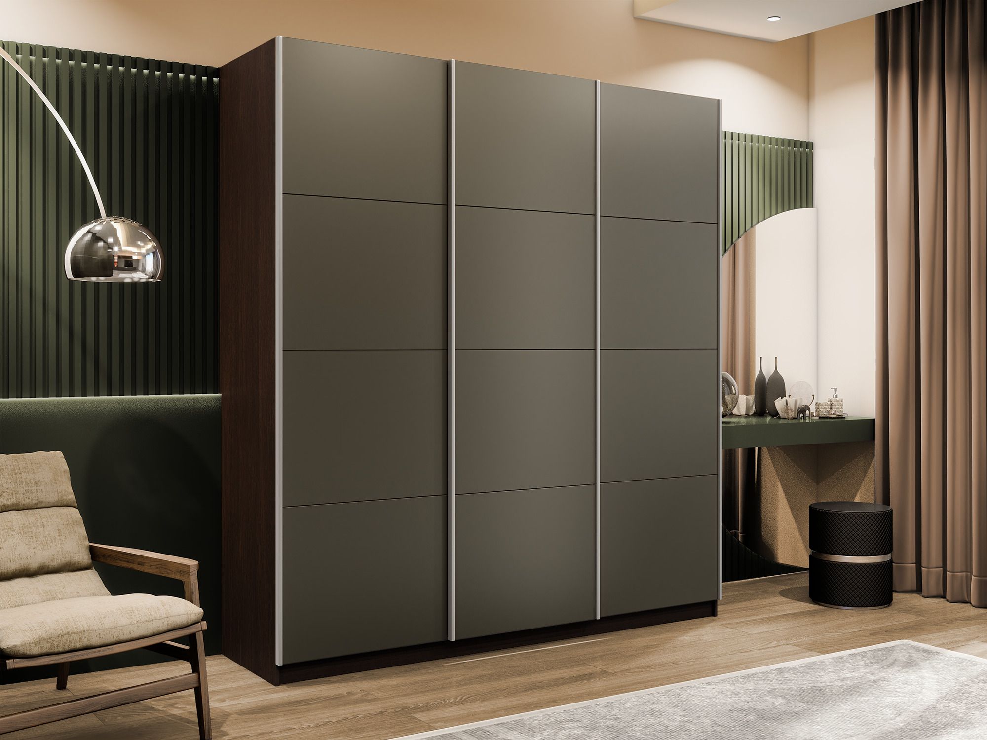 Отзывы о Столплит Шкаф-купе Эста 3-х дверный Стекла хаки/Доводчик 270х66х240 Венге мали