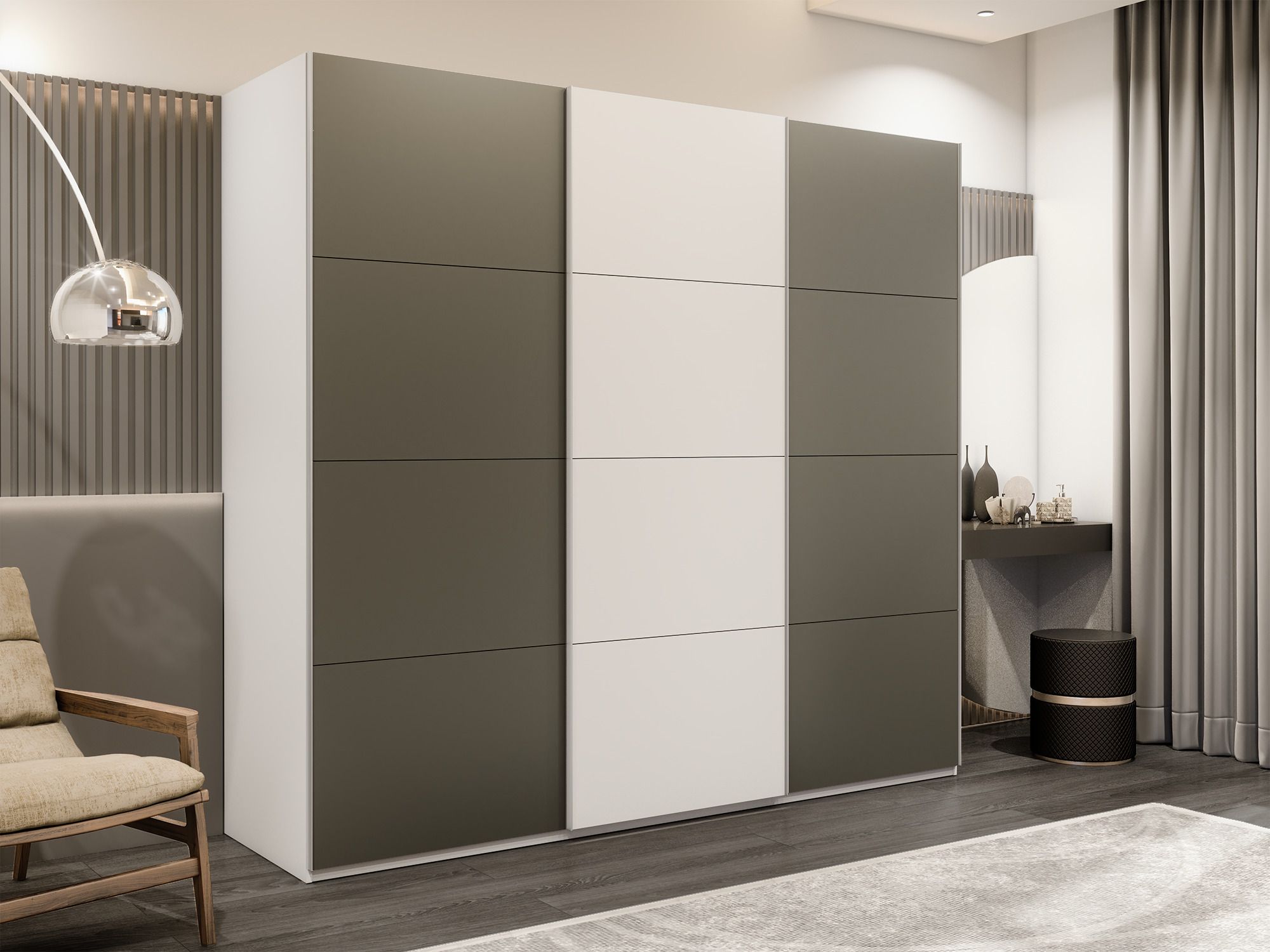 Отзывы о Столплит Шкаф-купе Эста 3-х дверный ДСП/Стекла хаки/Доводчик 270х66х240 Белый