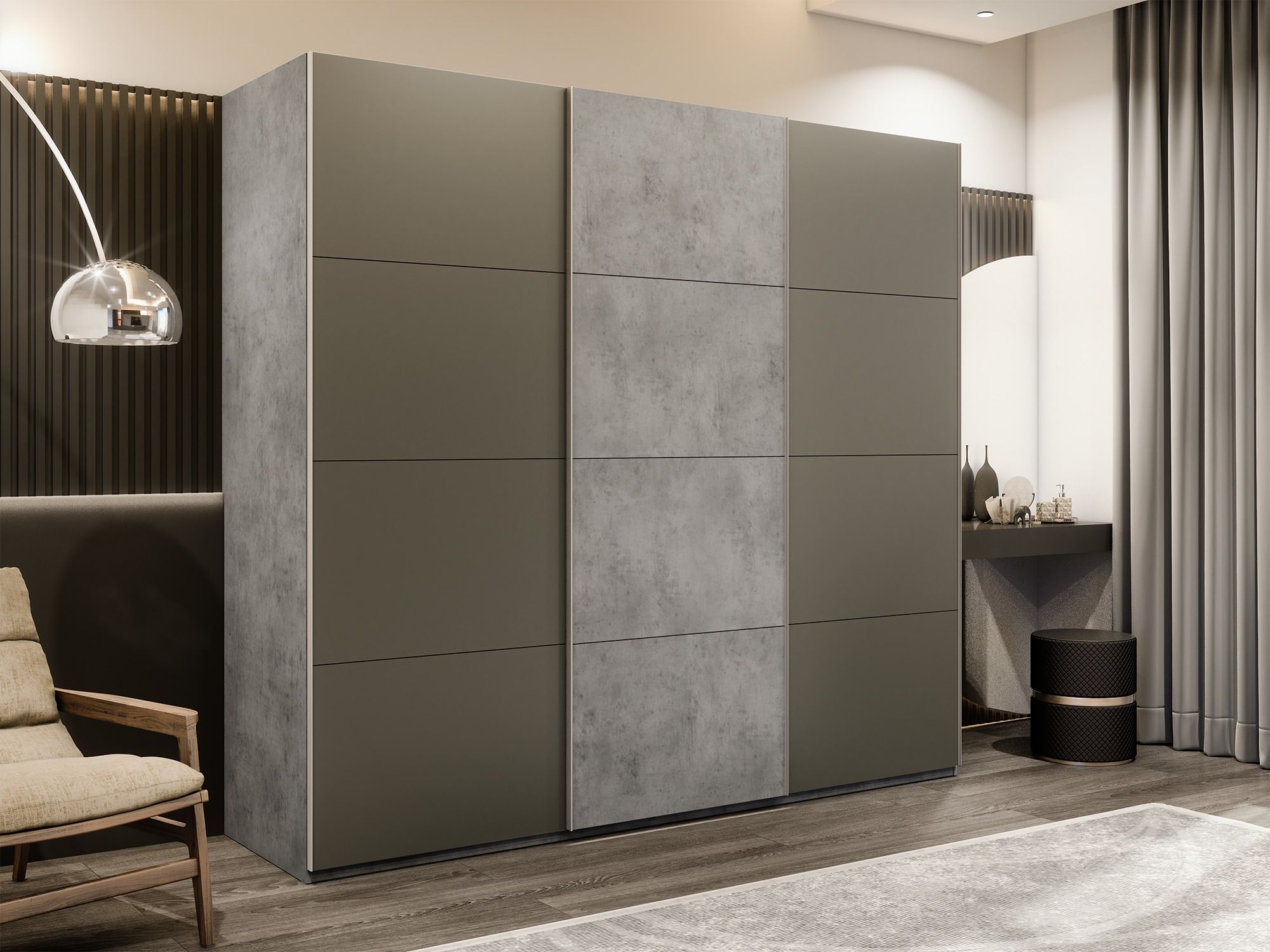 Шкаф-купе Эста 3-х дверный ДСП/Стекла хаки/Доводчик 300х66х240 (Бетон) Код I0000409032
