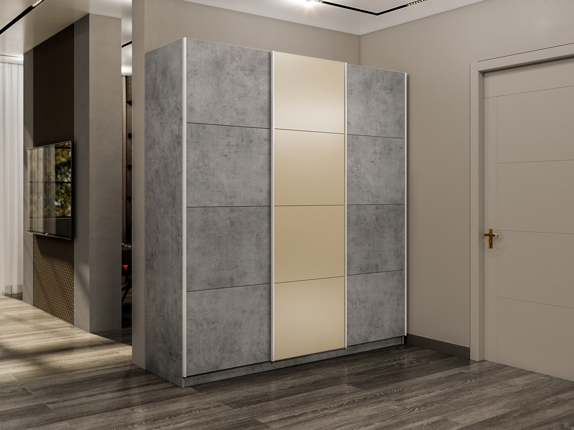 Шкаф-купе Прайм 3-х дверный Стекла фисташка/ДСП/Доводчики 210х57х230 (Бетон) Код I0000409045