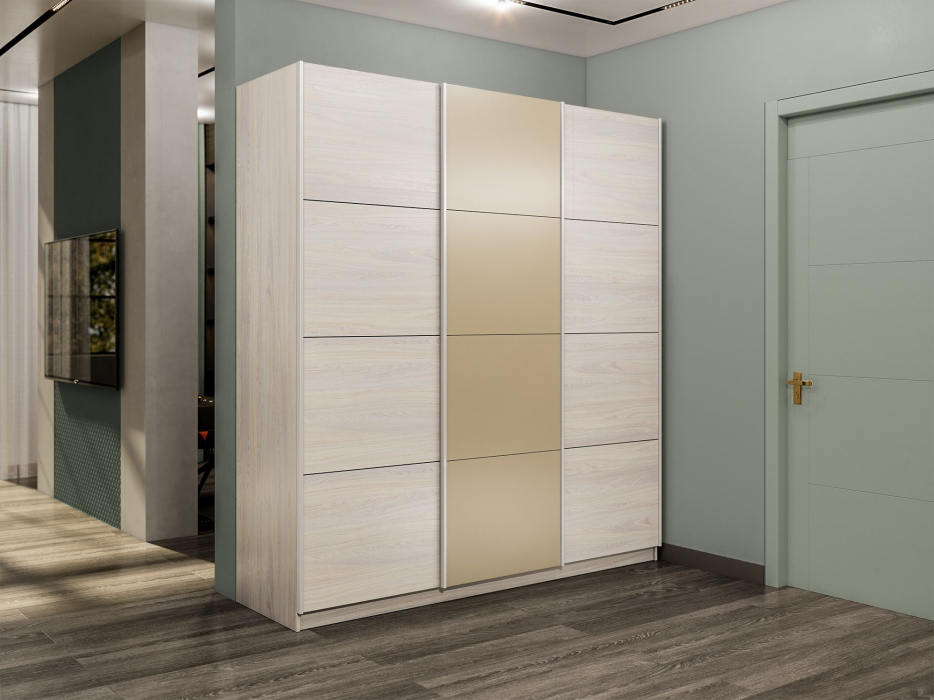 Шкаф-купе Прайм 3-х дверный Стекла фисташка/ДСП/Доводчики 210х57х230 (Ясень Анкор светлый) Код I0000409049