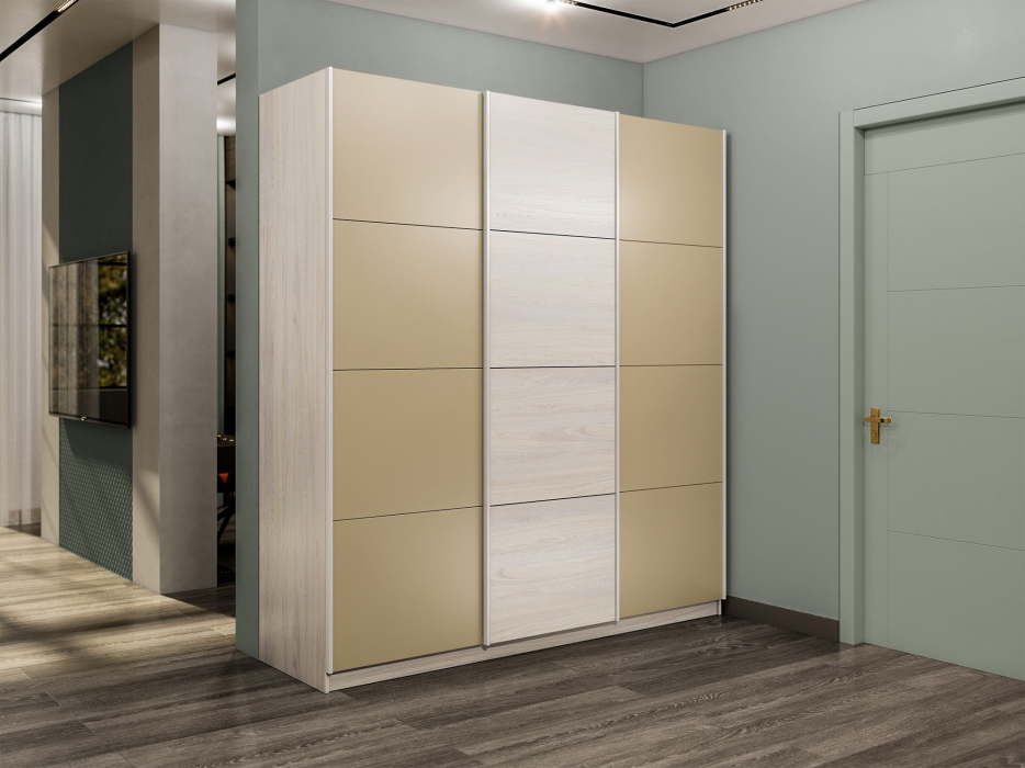 Шкаф-купе Прайм 3-х дверный Стекла фисташка/ДСП/Доводчики 180х57х230 (Ясень Анкор светлый) Код I0000409259