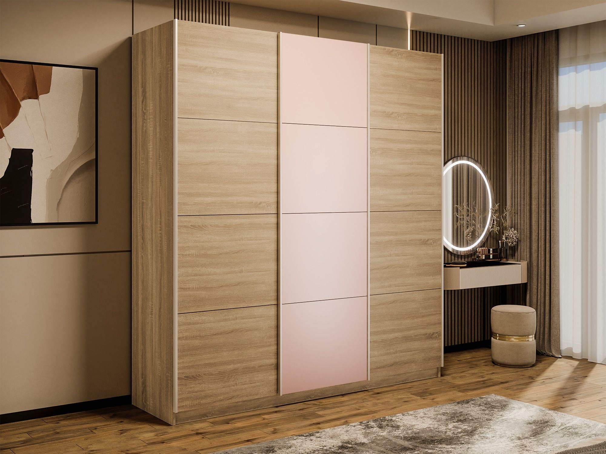 Отзывы о Столплит Шкаф-купе Прайм 3-х дверный Стекла пудра/ДСП/Доводчики 210х57х230 Дуб сонома