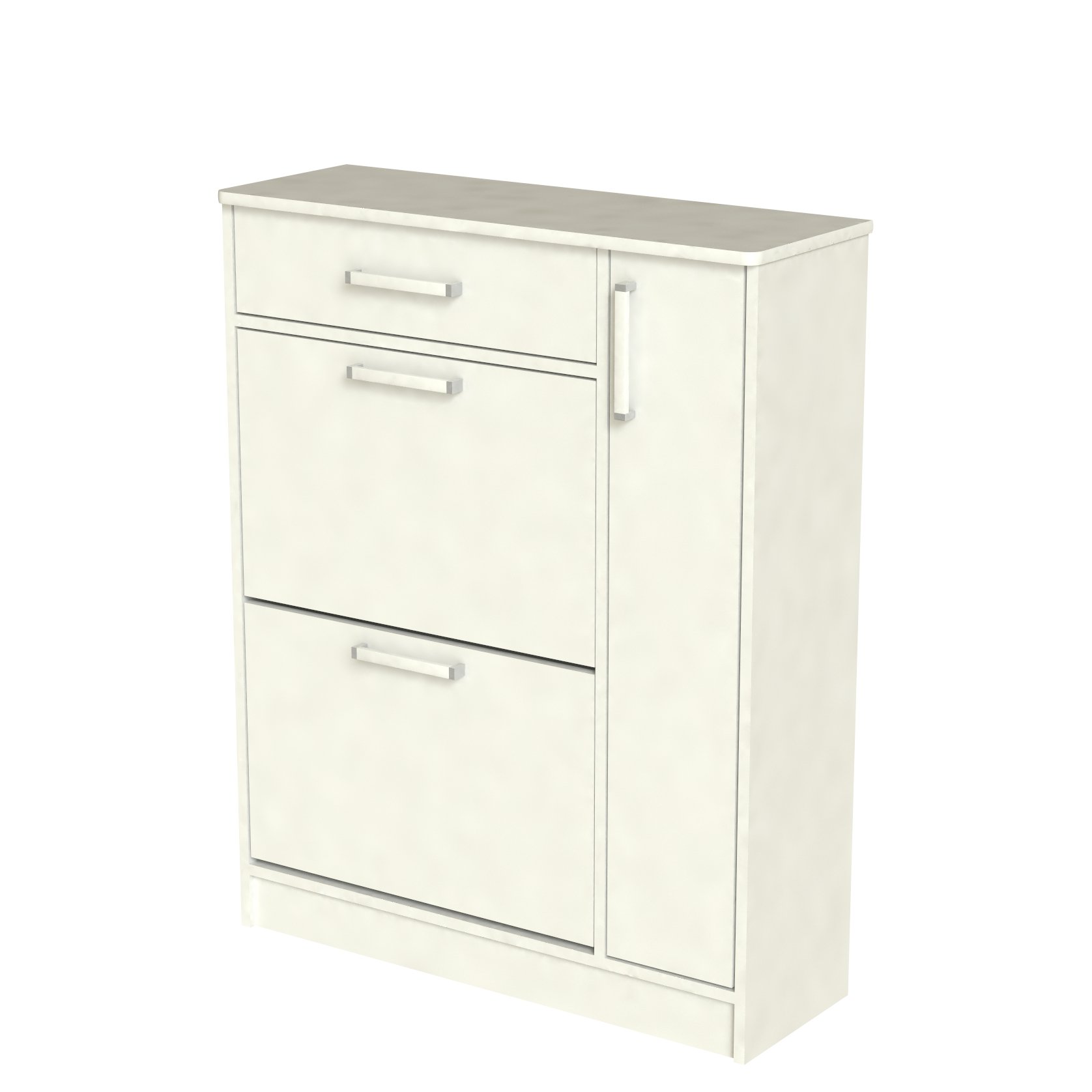 Обувница с двумя откидными нишами под обувь, распашной дверью со съемными полками и выдвижным ящиком. Тумба идеально встанет в Вашей прихожей и не займет много места.Корпус и фасады из качественного ЛДС.Производитель оставляет за собой право менять фурнитуру.