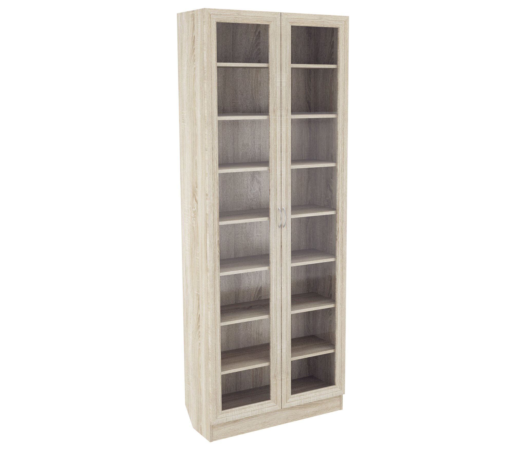 Шкаф ШК-2/3 выполнен из Ламинированной ДСП высокого качества с насыщенным цветом. Фасады выполнены из материала МДФ.Шириною 80 см., изделие имеет семь полок за большими стеклянными дверьми.Данный шкаф рассчитан для книг, учебных пособий, каталогов или медицинских карт. Отлично подойдет для учебных или мед учреждений.При необходимости можно поставить сверху еще и антресоль ШК-1/2 ,что увеличит высоту шкафа еще на 40 см.