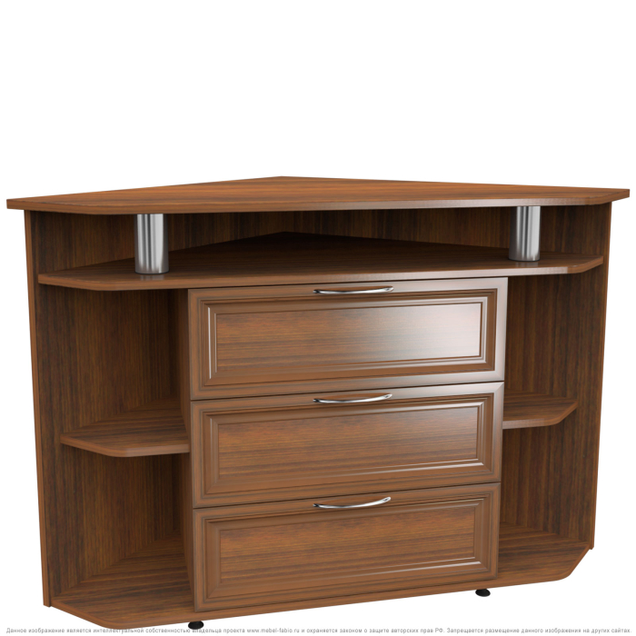 Комод 20 имеет 3 выдвижных ящика в центре, по бокам четыре угловые ниши, вверху полка. Верхняя платформа идеально рассчитана для установки телевизора, с возможностью установки дополнительной аппаратуры в нише под верхней платформой.Корпус комода выполнен из Ламинированной ДСП высокого качества с насыщенным цветом. Фасады выполнены из материала МДФ.Производитель оставляет за собой право менять фурнитуру.