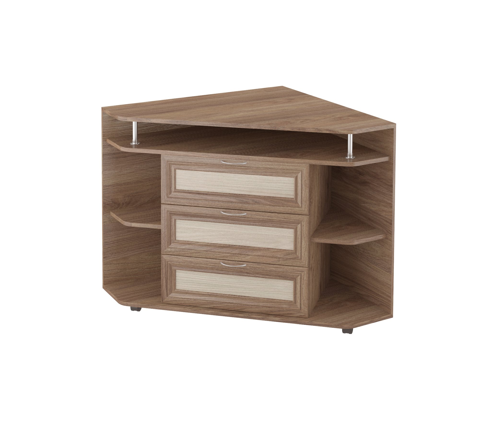 Комод 20 имеет 3 выдвижных ящика в центре, по бокам четыре угловые ниши, вверху полка. Верхняя платформа идеально рассчитана для установки телевизора, с возможностью установки дополнительной аппаратуры в нише под верхней платформой.Корпус комода выполнен из Ламинированной ДСП высокого качества с насыщенным цветом. Фасады выполнены из материала МДФ.Производитель оставляет за собой право менять фурнитуру.