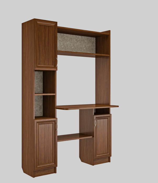 Уголок школьника №1 разработан как для школьников,так и для врослых пользователей.Отличается компактными размерами1700*1150*500 и функциональностью,что позволяет разместить его,даже в небольшом помещении.Корпус Выполнен из ЛДСП, с рамочными фасадами плёнка МДФ.