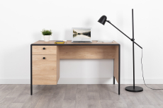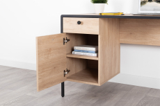 Стол дополнен тумбой с распашной дверцей и выдвижным ящиком на шариковых направляющих.
