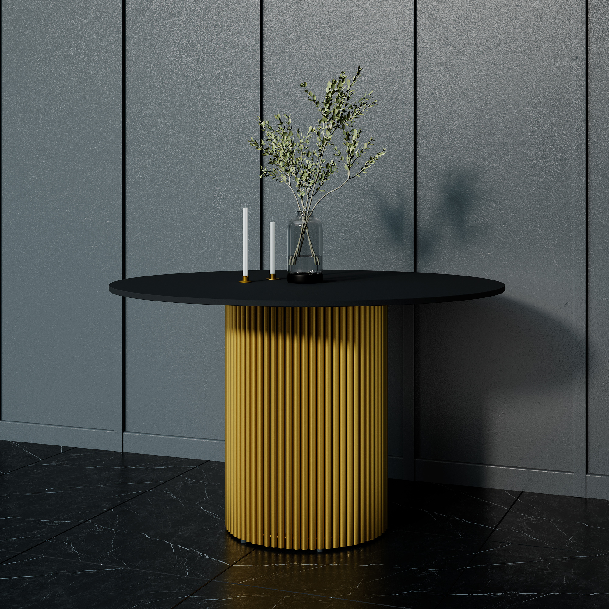Стол круглый обеденный с металлическим золотым подстольем GENGLASS TRUBIS Wood 120 (Черный)