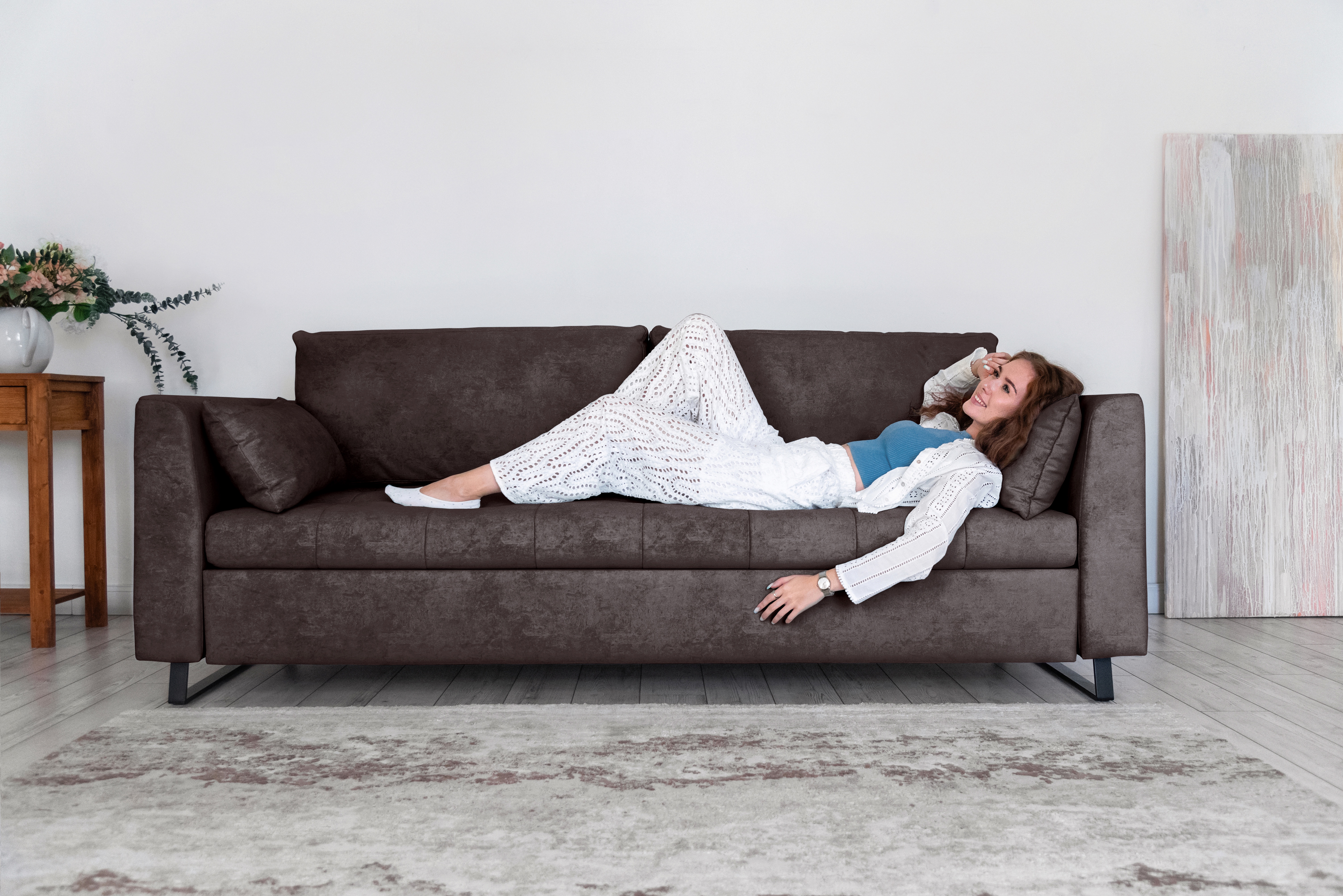 Наполнение дивана разработано с расчётом на продолжительный отдых и идеально подходит для сна.