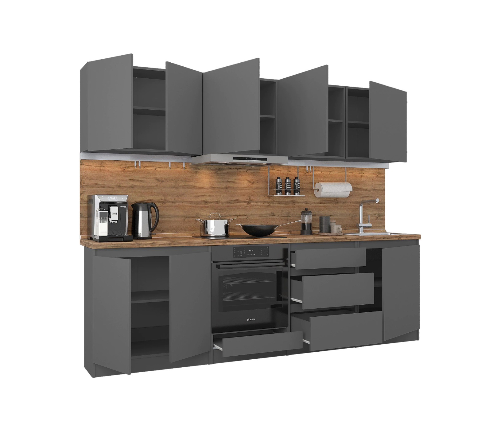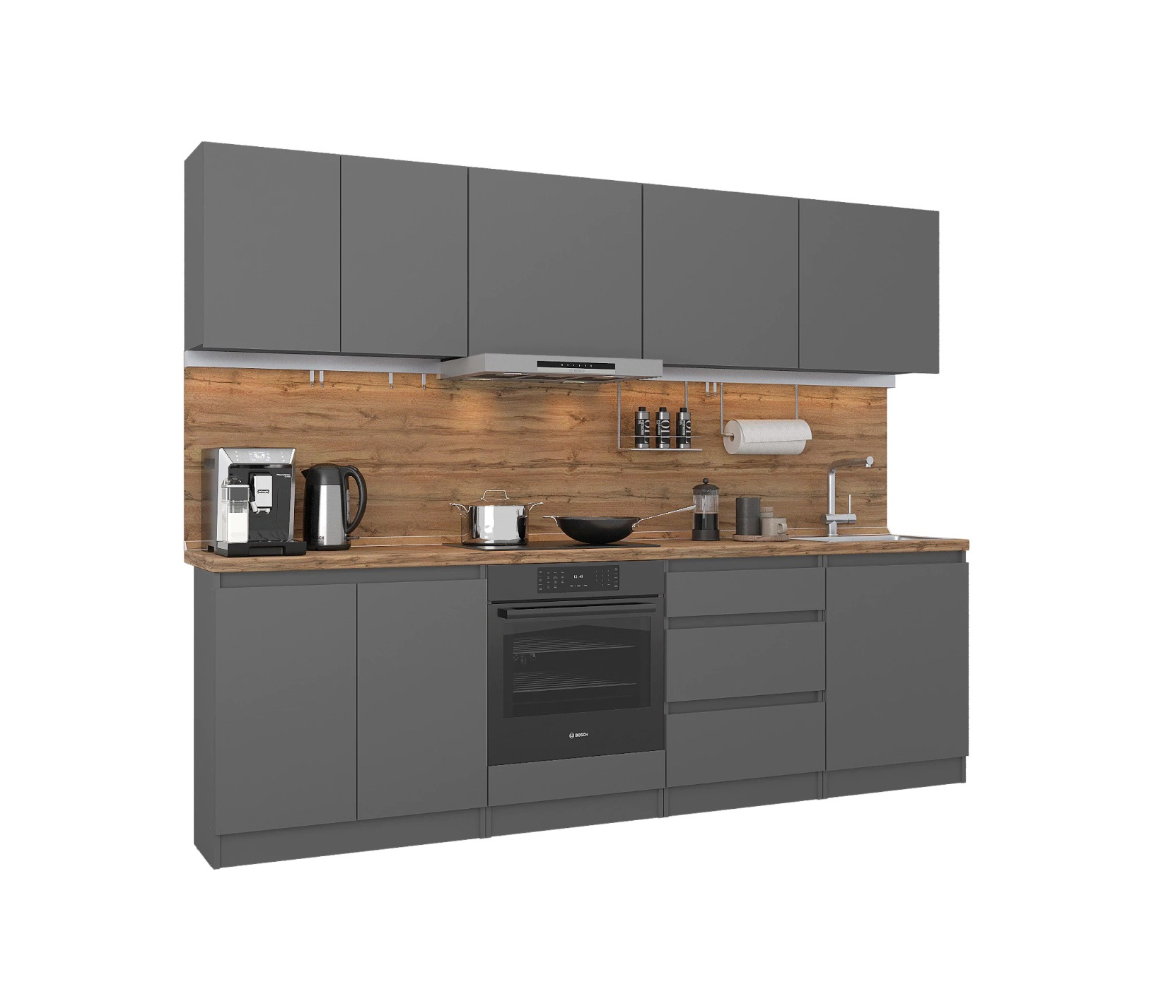 Кухонный гарнитур Леон прямой 260 см, диамант серый (Диамант серый)