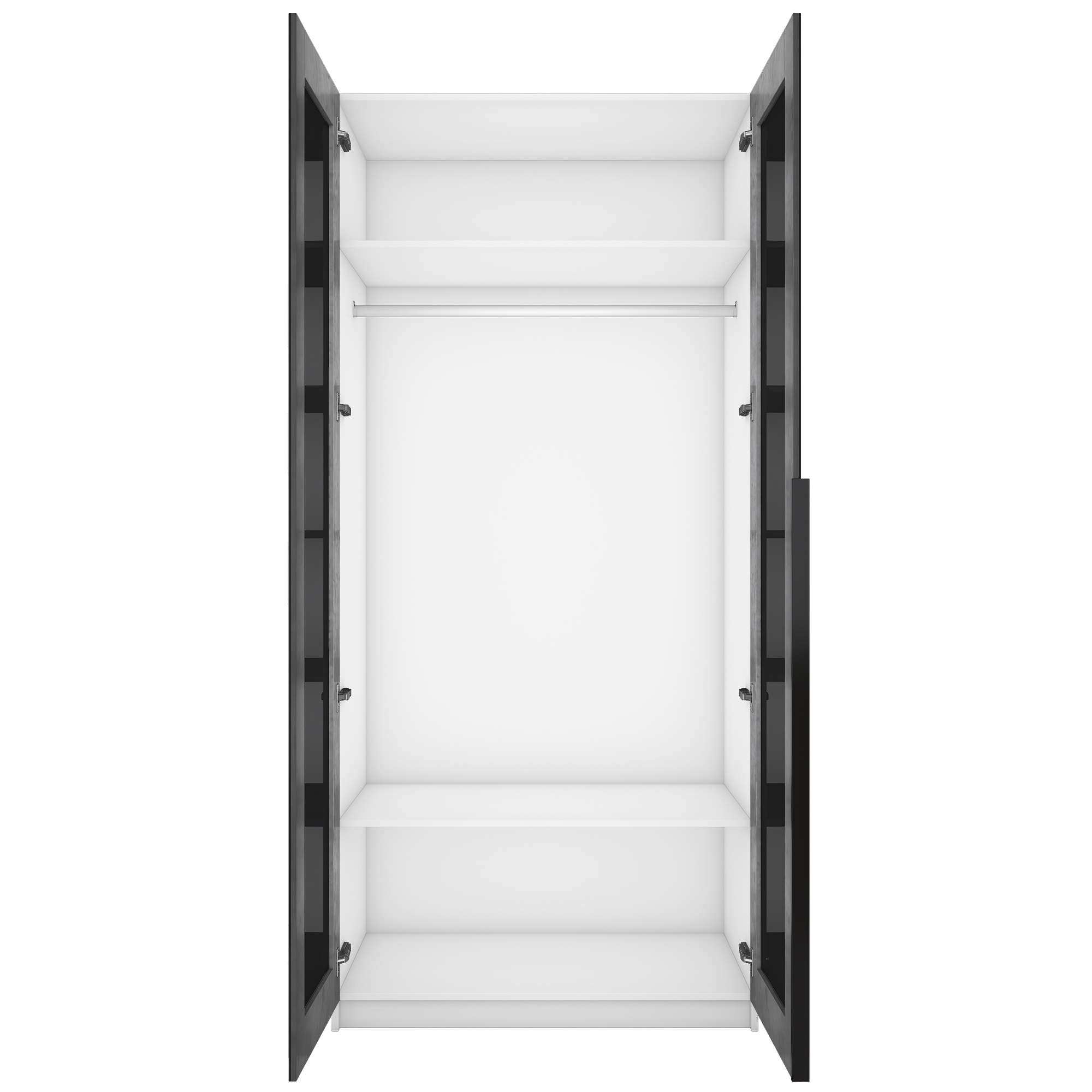 Шкаф распашной Е1 Локер 101x52.5x220 см, с черным стеклом (Белый снег) Код I0000426798
