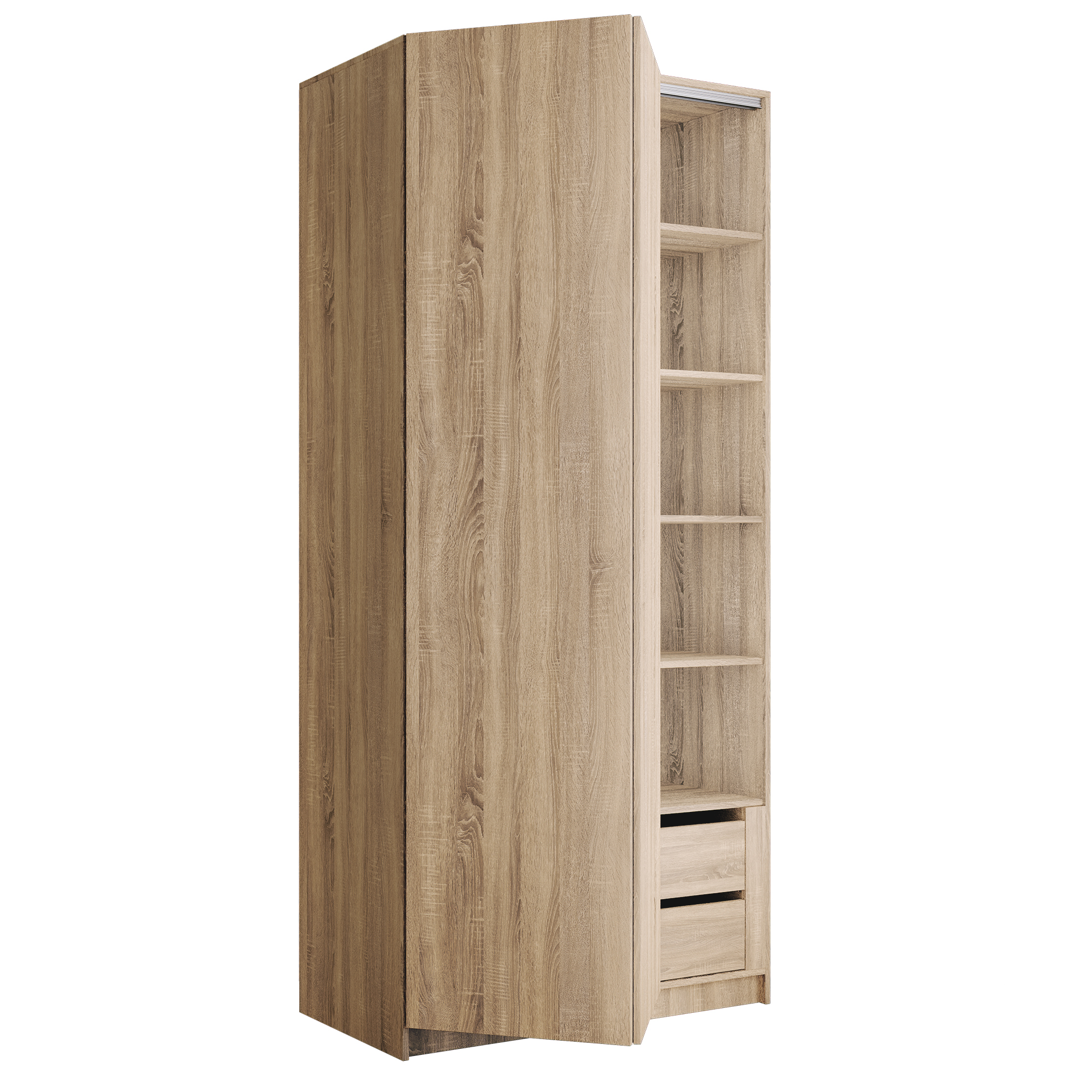 Шкаф складной Е1 Локер ("Гармошка" с системой Push to Move/Левый)101х52,5х220 см, с полками и модулем (Дуб сонома) Код I0000426808