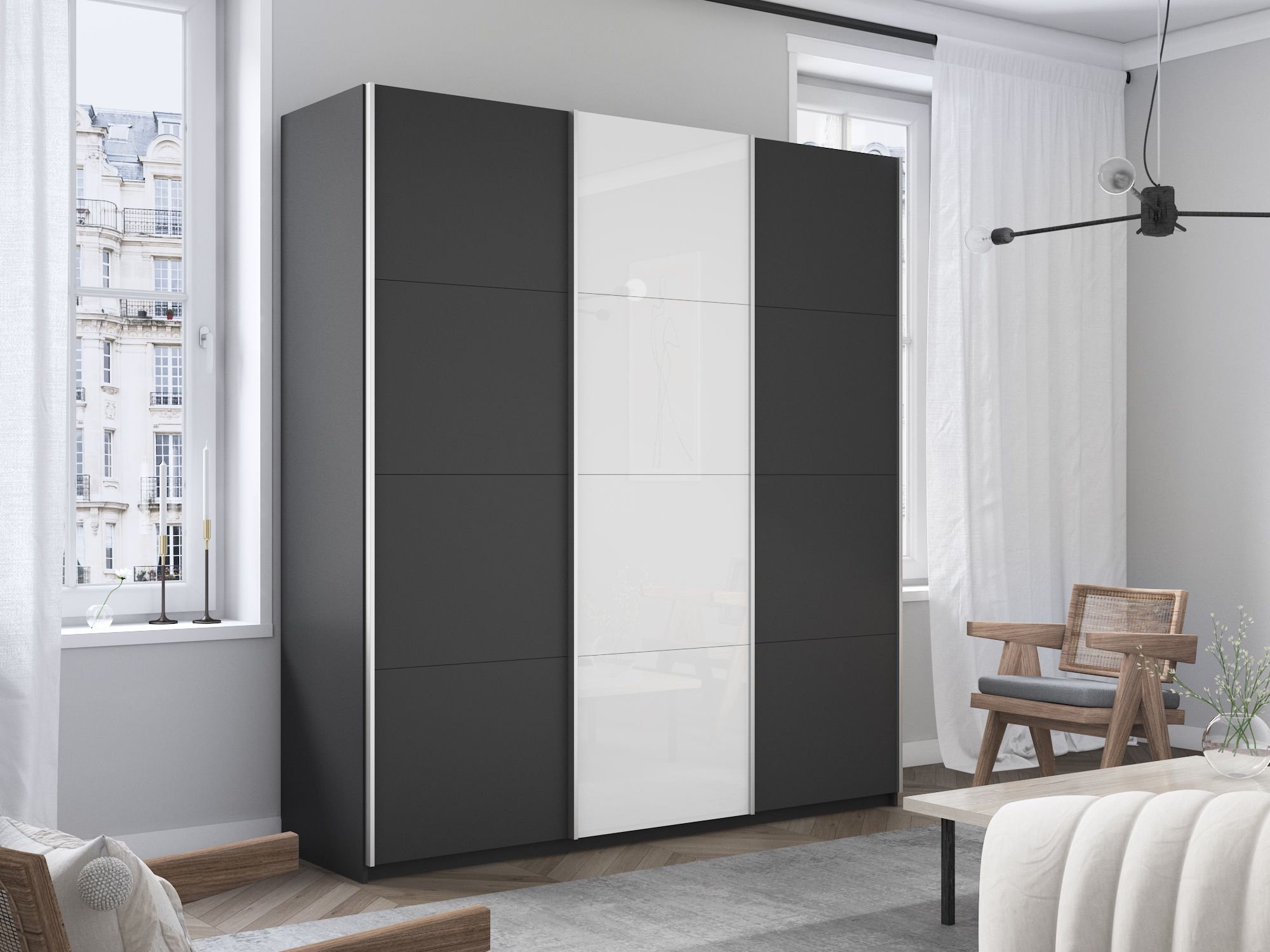 Отзывы о Столплит Шкаф-купе Прайм 3-х дверный ДСП/Стекло белое/Доводчики 210х57х230 Серый диамант