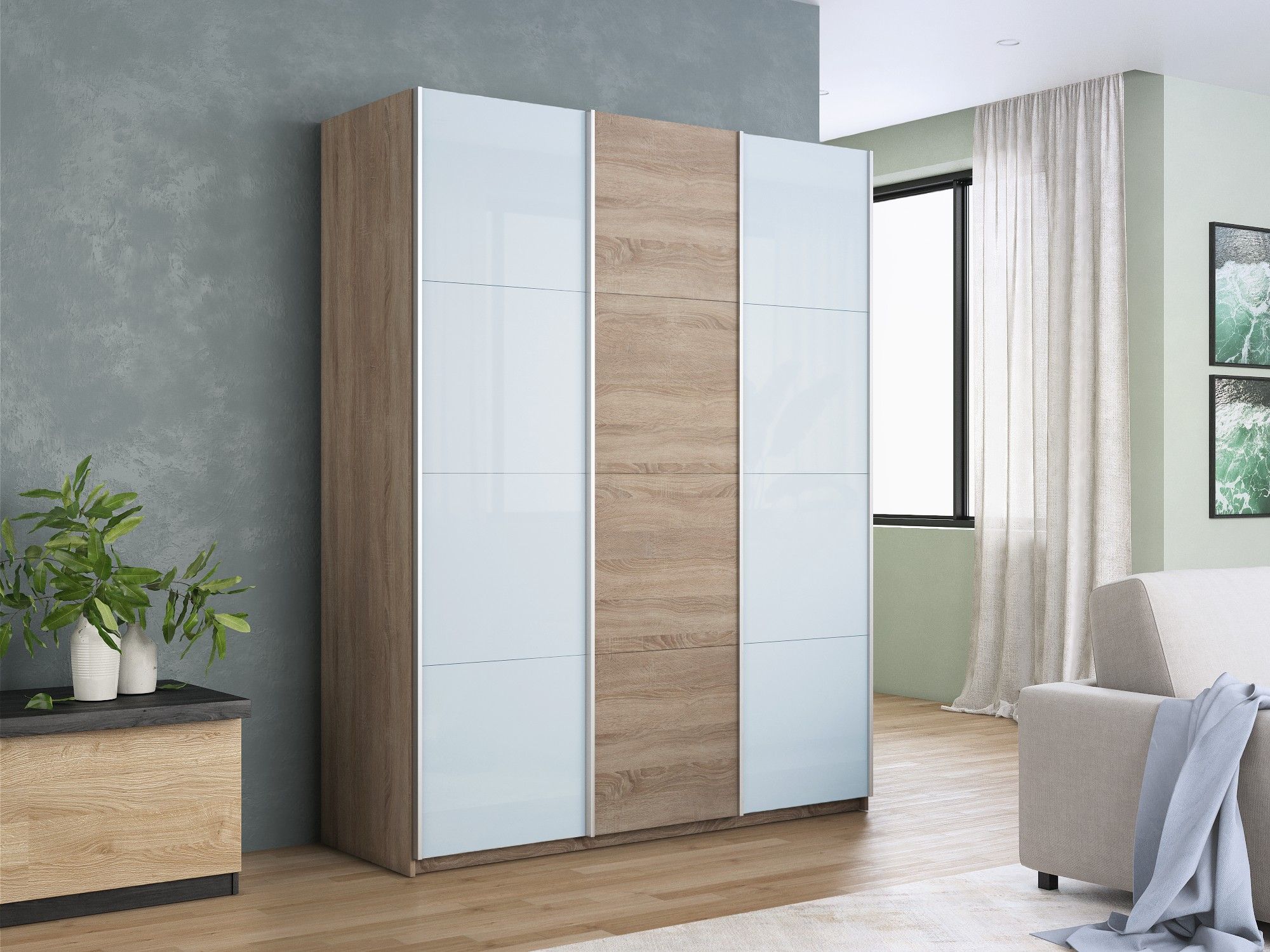 Отзывы о Столплит Шкаф-купе Прайм 3-х дверный Стекла белые/ДСП/Доводчики 210х57х230 Дуб сонома