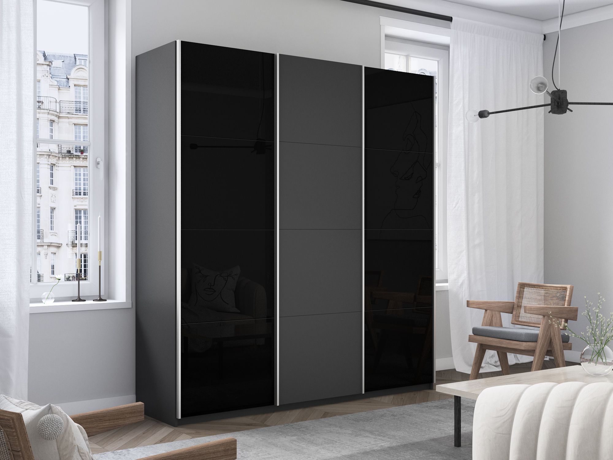 Отзывы о Столплит Шкаф-купе Прайм 3-х дверный Стекла черные/ДСП/Доводчики 180х57х230 Серый диамант