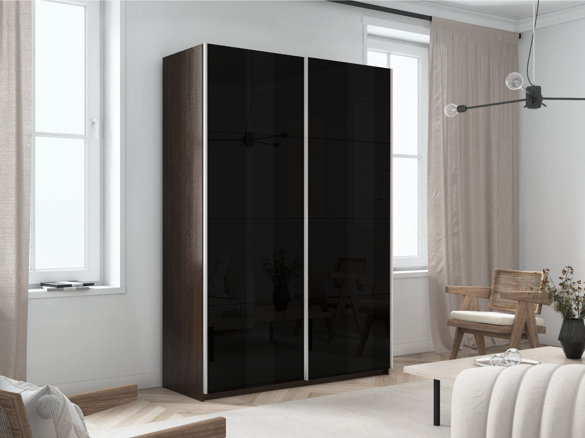 Отзывы о Столплит Шкаф-купе Прайм 2-х дверный Стекла черные/Доводчики 140х57х230 Венге
