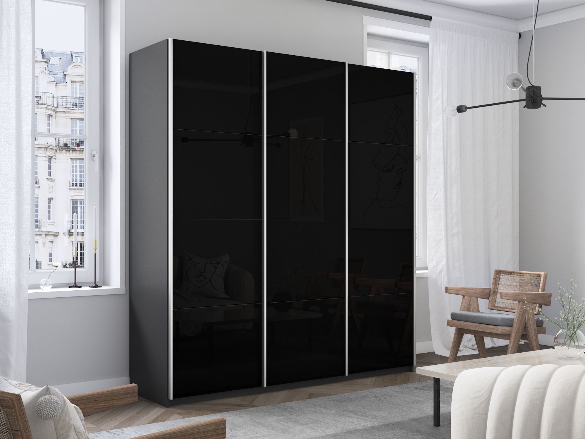 Отзывы о Столплит Шкаф-купе Прайм 3-х дверный Стекла черные/Доводчики 180х57х230 Серый диамант