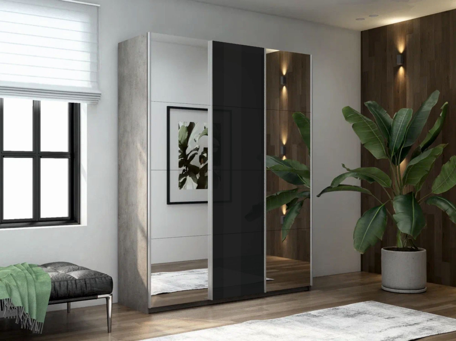 Отзывы о Столплит Шкаф-купе Прайм 3-х дверный Зеркала/Стекло черное/Доводчики 180х57х230 бетон