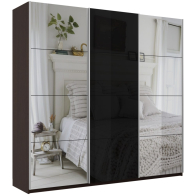Отзывы о Столплит Шкаф-купе Прайм 3-х дверный Зеркала/Стекло черное/Доводчики 210х57х230 Венге