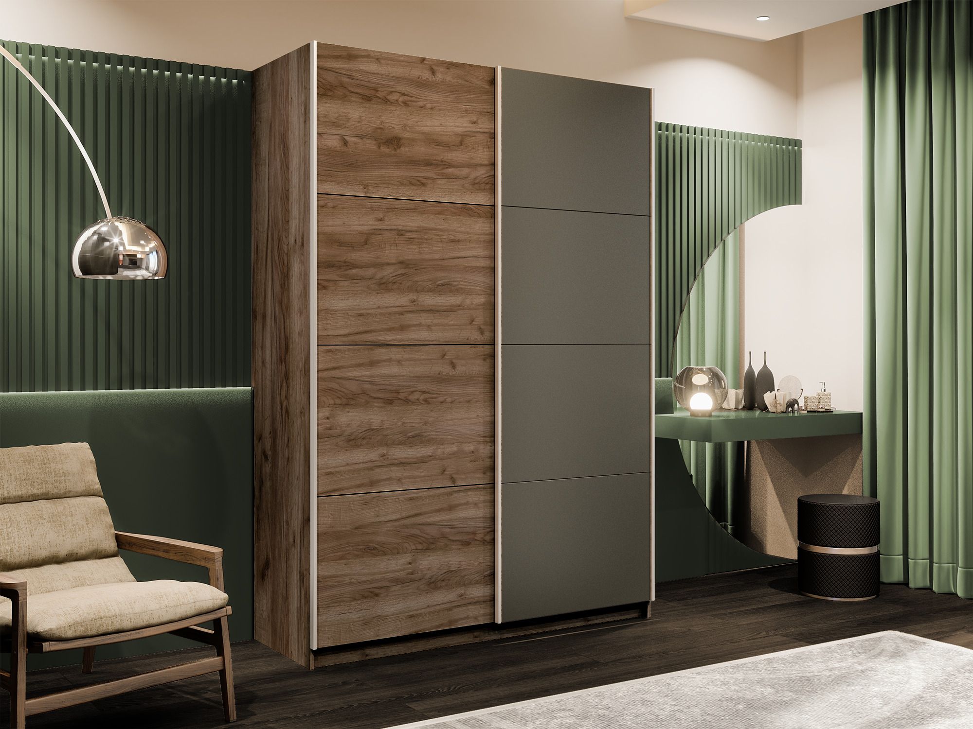 Отзывы о Столплит Шкаф-купе Прайм 2-х дверный ДСП/Стекло хаки/Доводчики 160х57х230 Дуб/крафт/табак