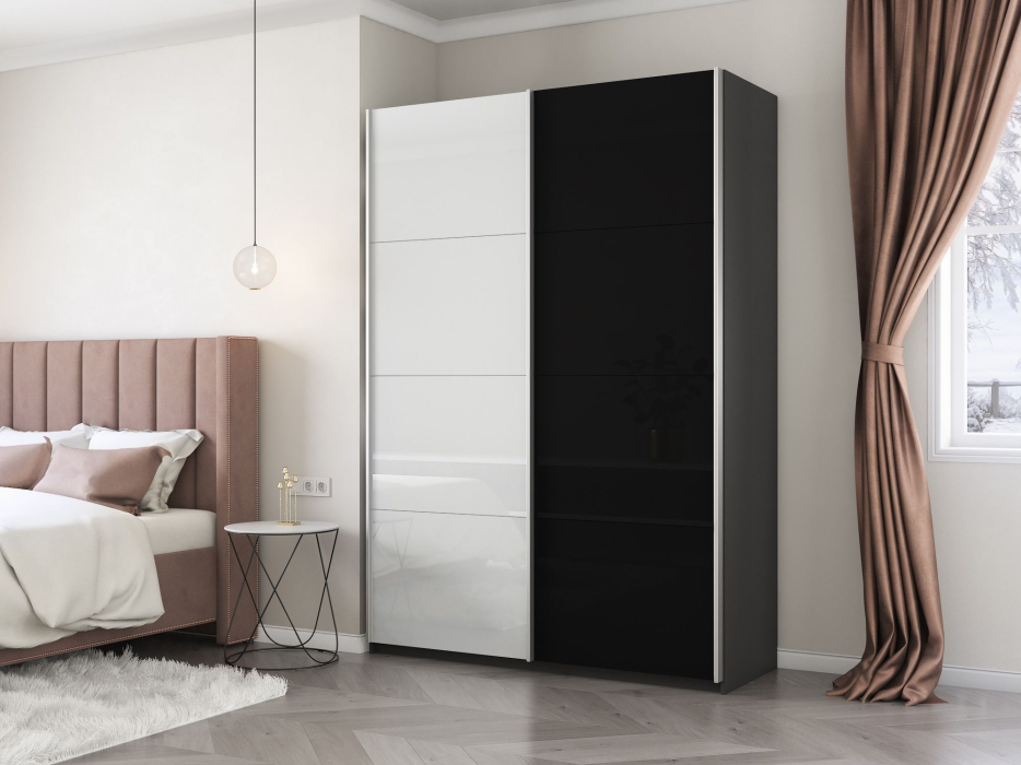 Отзывы о Столплит Шкаф-купе Прайм 2х дверный Белый Глянец/Стекло черное 120х57х230 Темно-серый