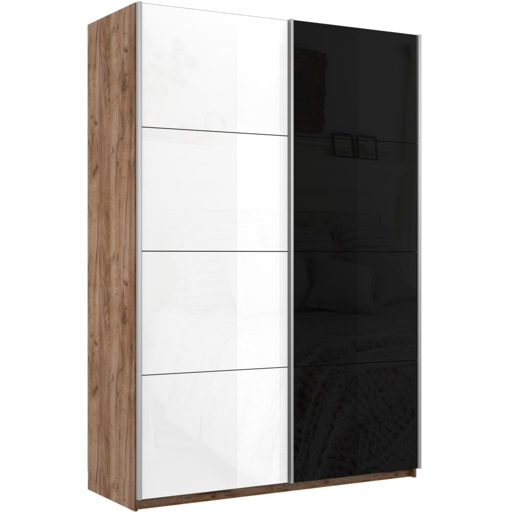Отзывы о Столплит Шкаф-купе Прайм 2х дверный Белый Глянец/Стекло черное 140х57х230 Дуб/крафт/табак