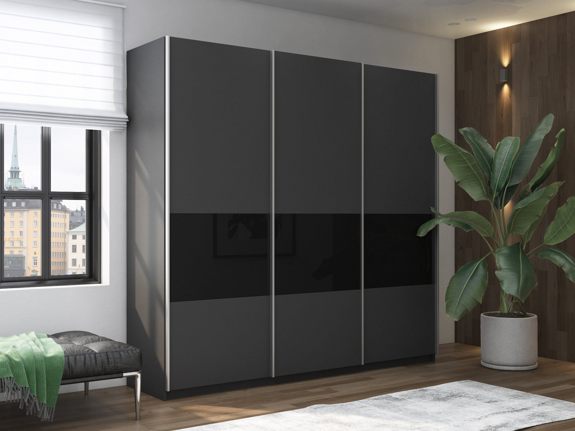 Отзывы о Столплит Шкаф-купе Прайм ДСП/Стекло черное, 240х57х230 Серый диамант