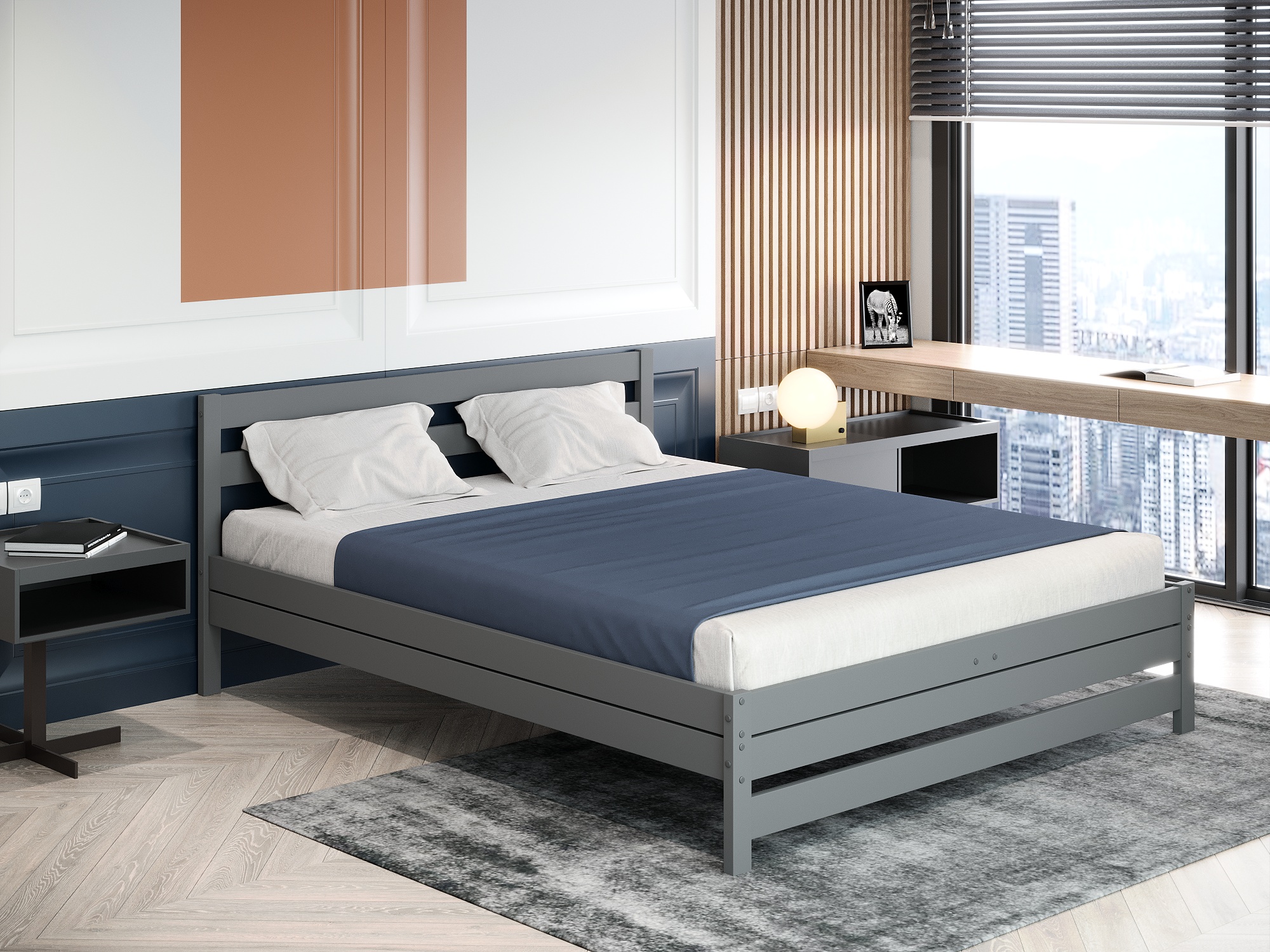 Кровать двуспальная "MAMAMIA 3" 160x200 (Серый)