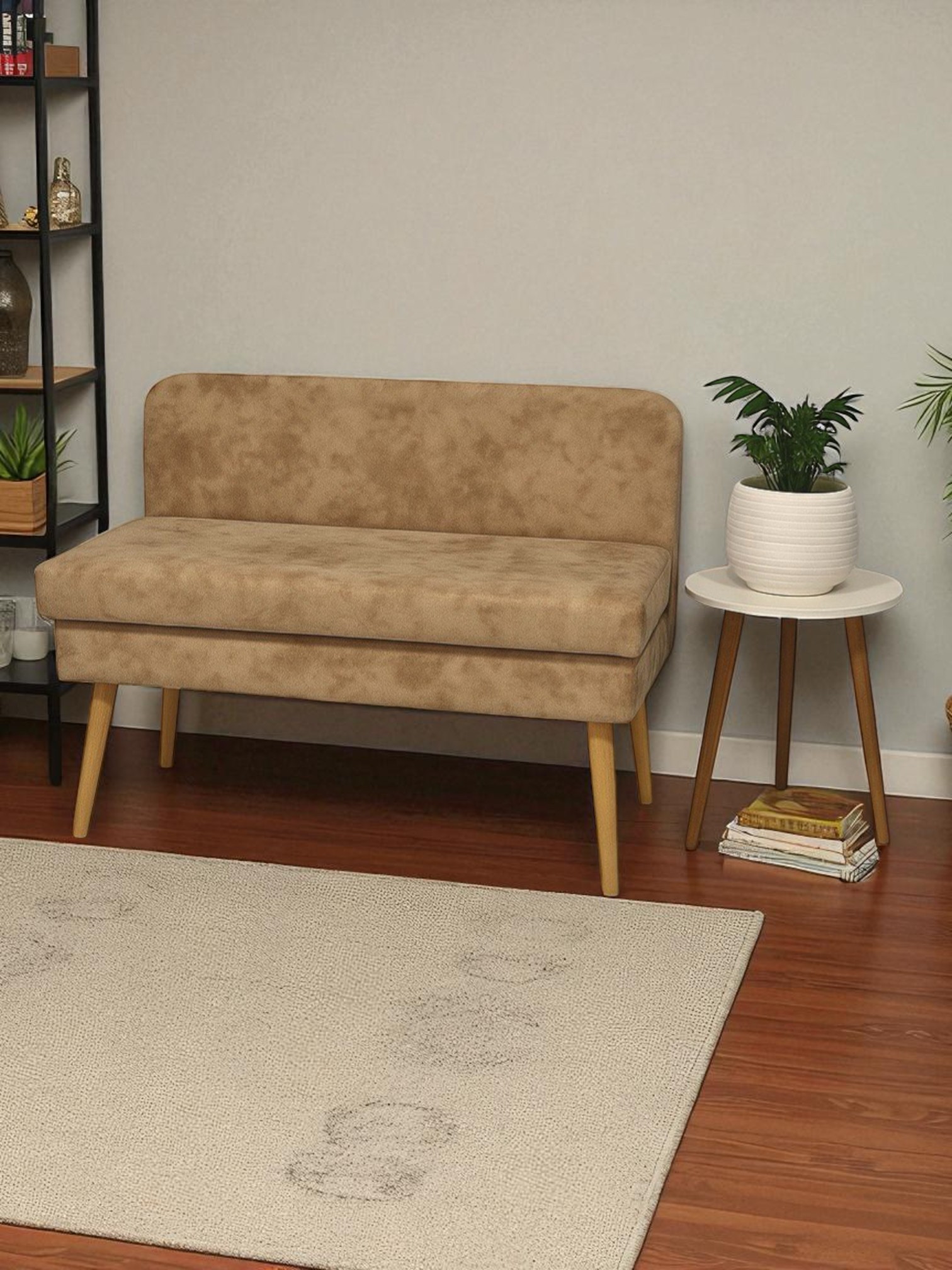 Диван кушетка с ящиком Эда, плюш (Бежевый)