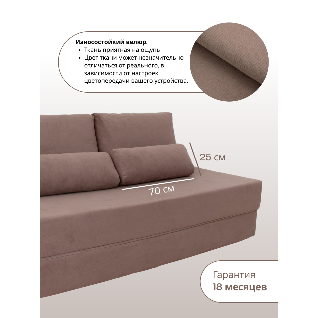 Представляем бескаркасный диван-кровать Спенсер — идеальный выбор для любого интерьера. Благодаря своему компактному размеру и стильному дизайну, он станет незаменимым элементом вашей гостиной, спальни, детской или даже лоджии. Эта модель не только красива, но и функционална: она легко трансформируется в удобное спальное место с размерами 185 см на 140 см. В разложенном состоянии образуется ровная спальная поверхность, обеспечивающая комфорт во время сна. Диапазон возможностей делает его идеальным для малогабаритных квартир, где важна каждая деталь. Использование высококачественного микровелюра в обивке обеспечивает долговечность и легкость в очищении, что особенно важно для семей с детьми, подростками и домашними животными. Антивандальное покрытие защитит диван от повреждений, а его спальное место создано для комфортного отдыха, обеспечивая необходимую поддержку благодаря высокоэластичному пенополиуретану. Наружный чехол легко снимается для чистки благодаря застежкам-молниям. Экологически чистые материалы и продуманный дизайн позволят создать уютную атмосферу в комнате. Удобные съемные подушки обеспечивают дополнительный комфорт во время отдыха, а легкость конструкции позволяет без труда перемещать диван из комнаты в комнату. Книжка подходит не только для квартиры, но и для дачи. Стильный вид впишется в любой интерьер — от лофта до модерна. Запланируйте вечерние посиделки с друзьями или уютные ночевки с близкими, не беспокоясь о недостатке пространства. Это практичное решение для тех, кто ценит стиль и функциональность в одном. К тому же, вакуумный диван поставляется в скрученном виде, что значительно упрощает транспортировку и размещение в помещениях с ограниченным пространством. Создайте идеальное место для отдыха со Спенсером, который будет радовать вас и ваших гостей на протяжении многих лет.