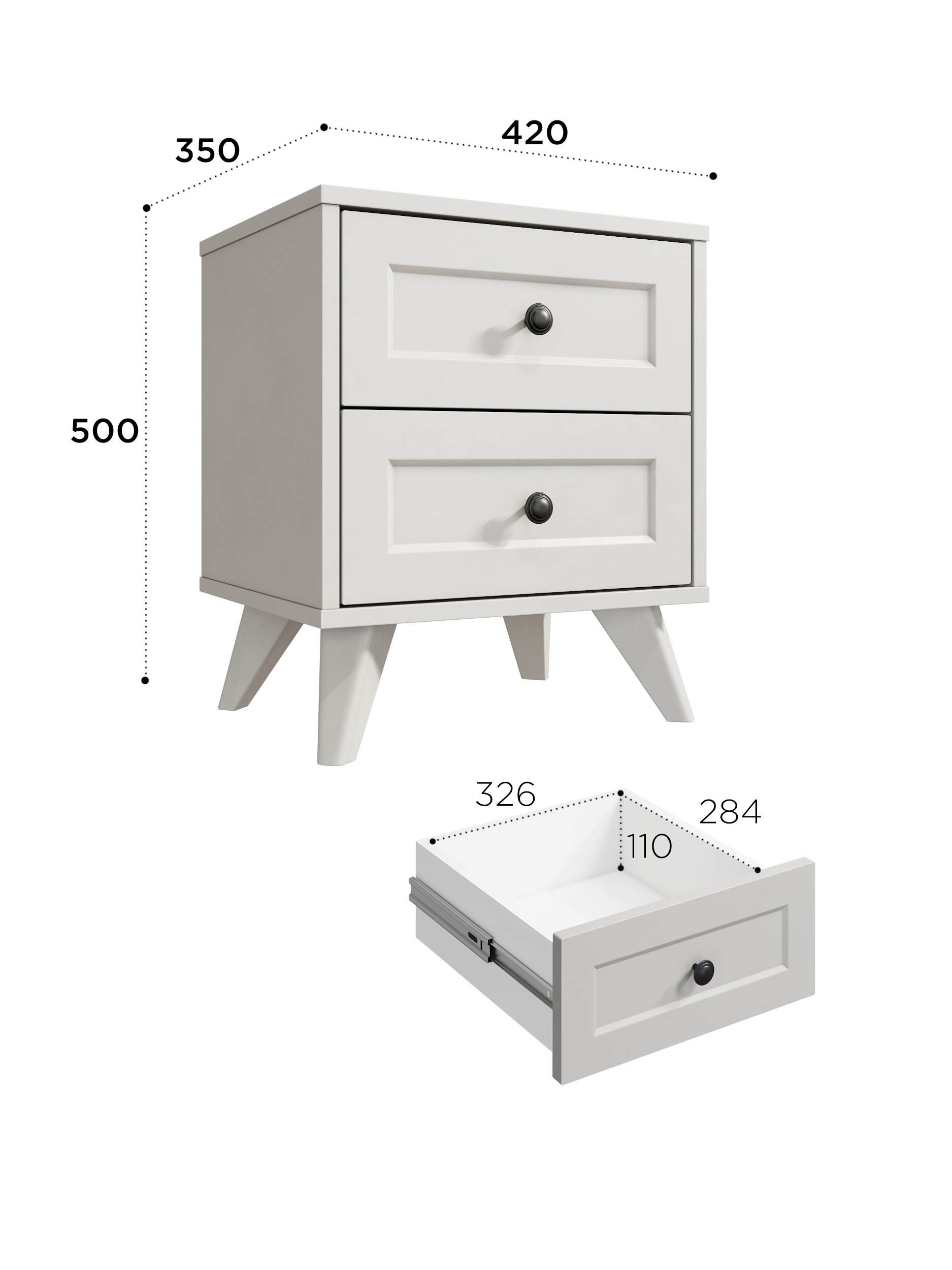 2 выдвижных ящика на телескопических направляющих полного выдвижения
