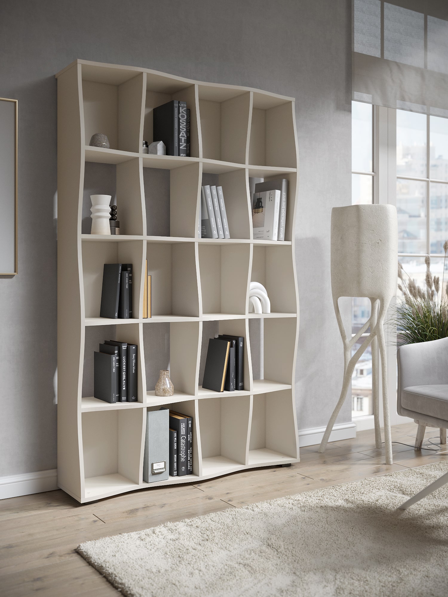 Функциональность: открытые полки для хранения книг, аксессуаров и декора.